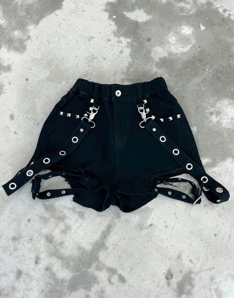 REFLEMからサイドベルト付スタッズデニムショートパンツが入荷。