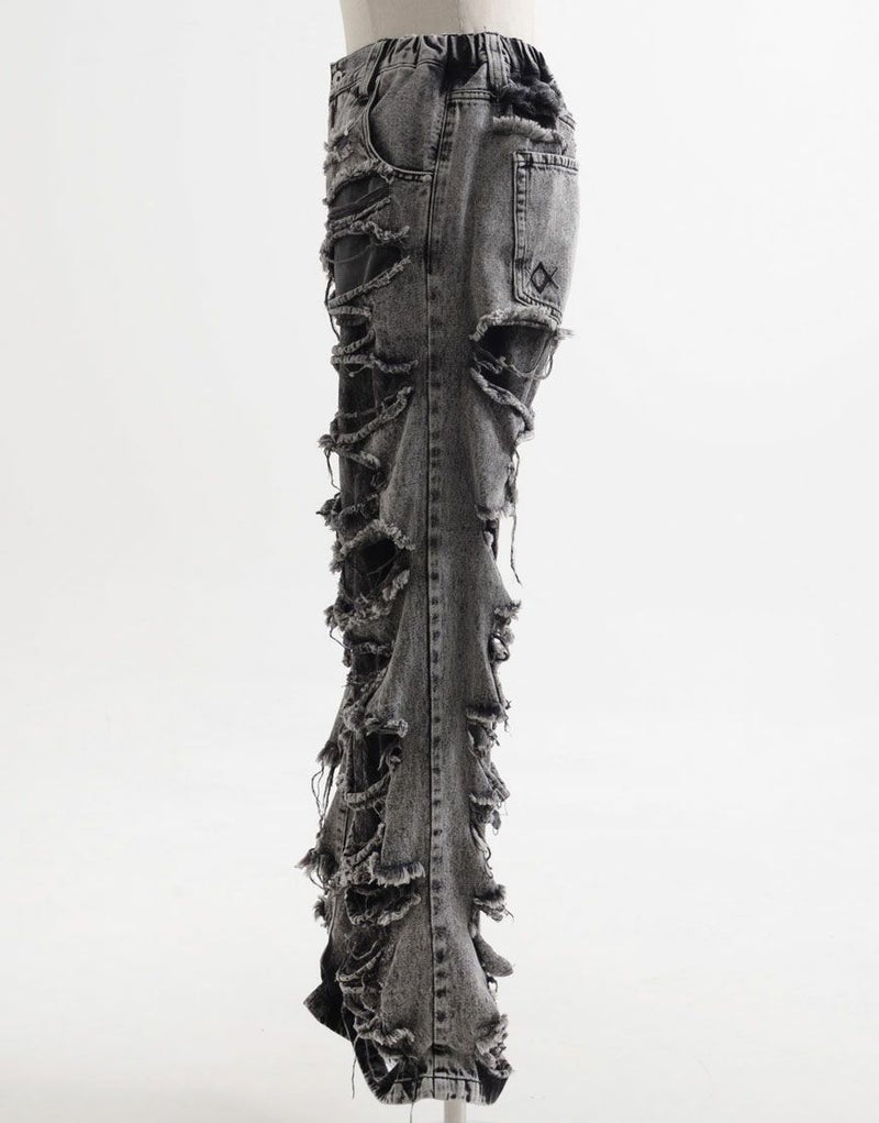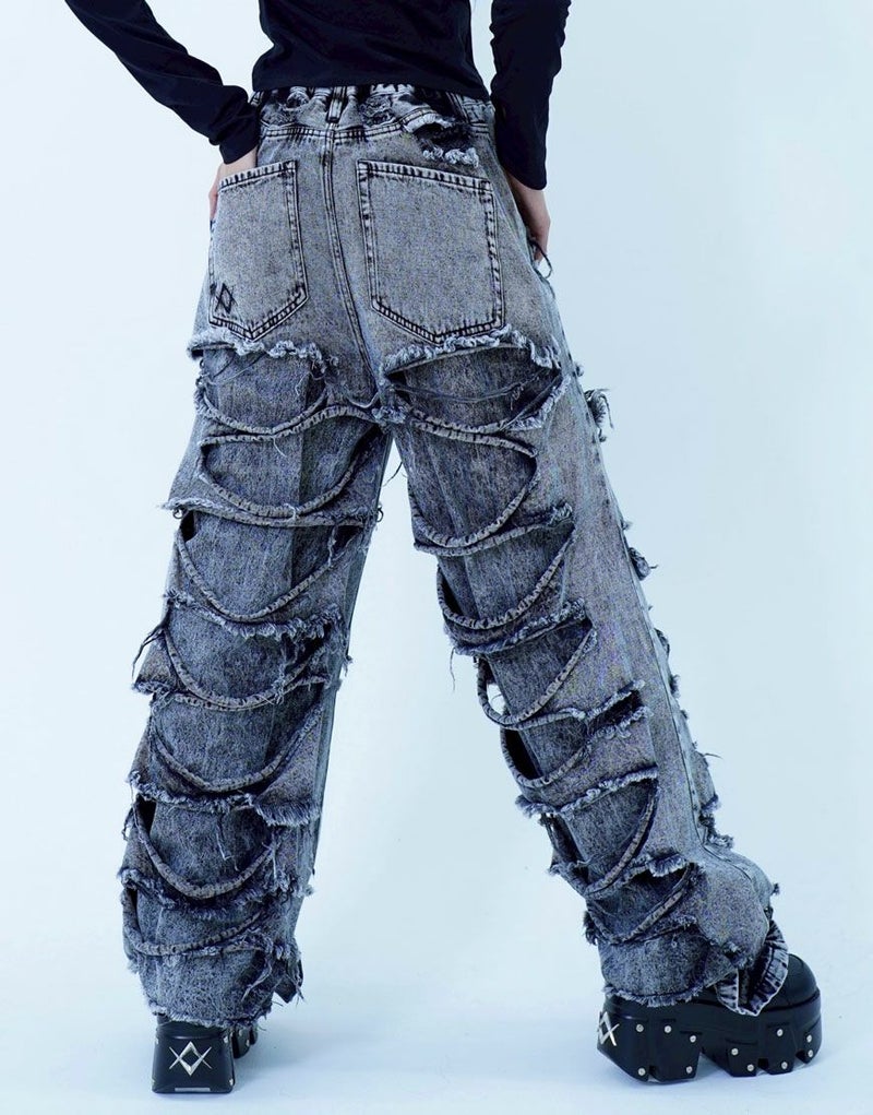 前後身頃に大胆なクラッシュ加工を施し、存在感のあるダメージ感を演出。