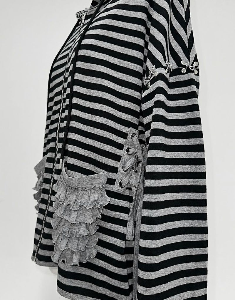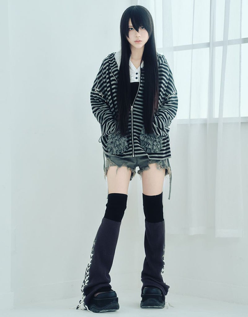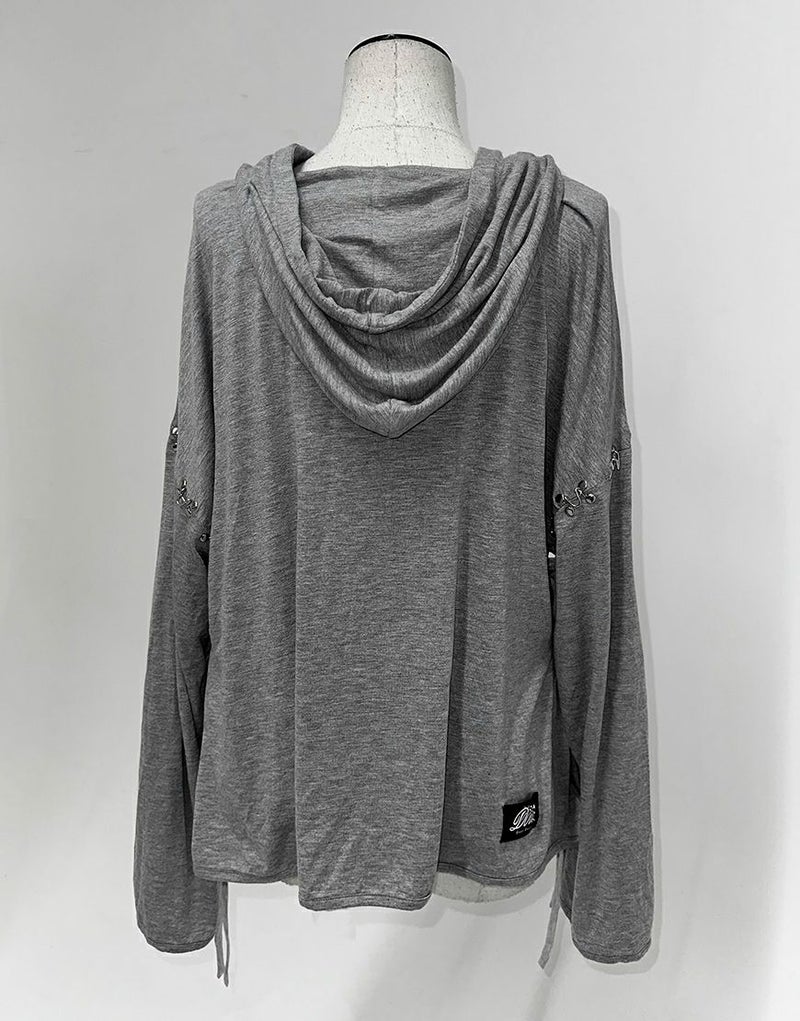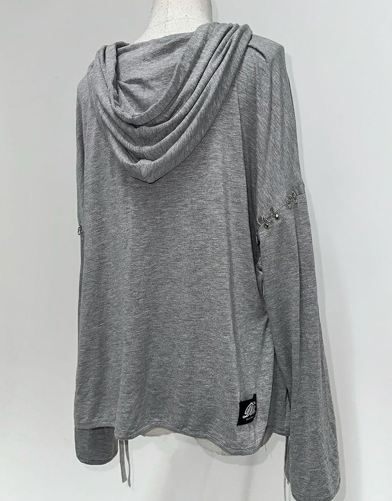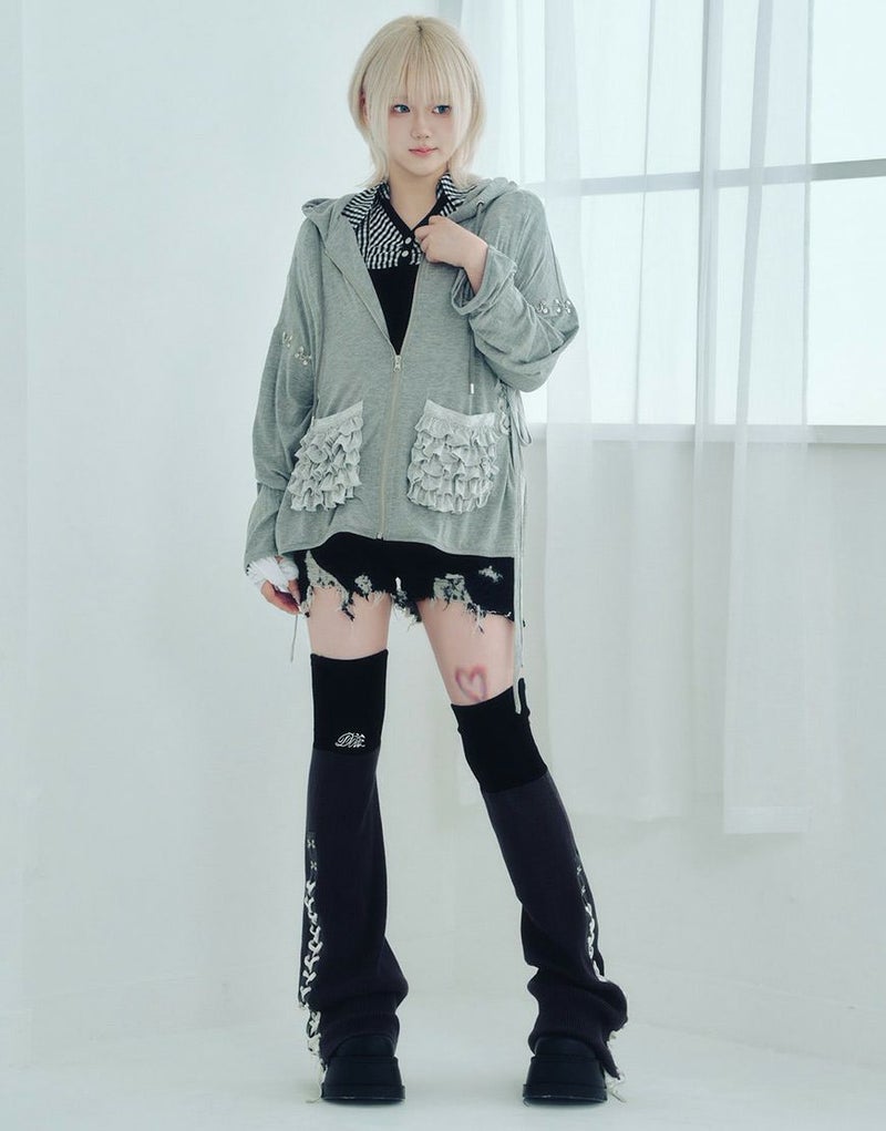 不気味に惹かれるあなたの感性、ダストデビルが叶えてあげる 【DustDevil】 producer/すかる デビルっぽいシックなデザインに天使のようなフリルをミックスしたパーカー 薄い生地と優しい肌触りで、肌寒い日の羽織や日焼け対策としても着られます。 ※お一人様各色2点までの購入の制限とさせていただきます。