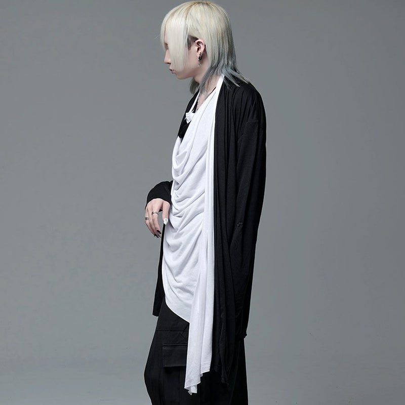 アウターとしても、レイヤードにも使えるドレープカーデはメンズ、レディースを問わずオススメです。