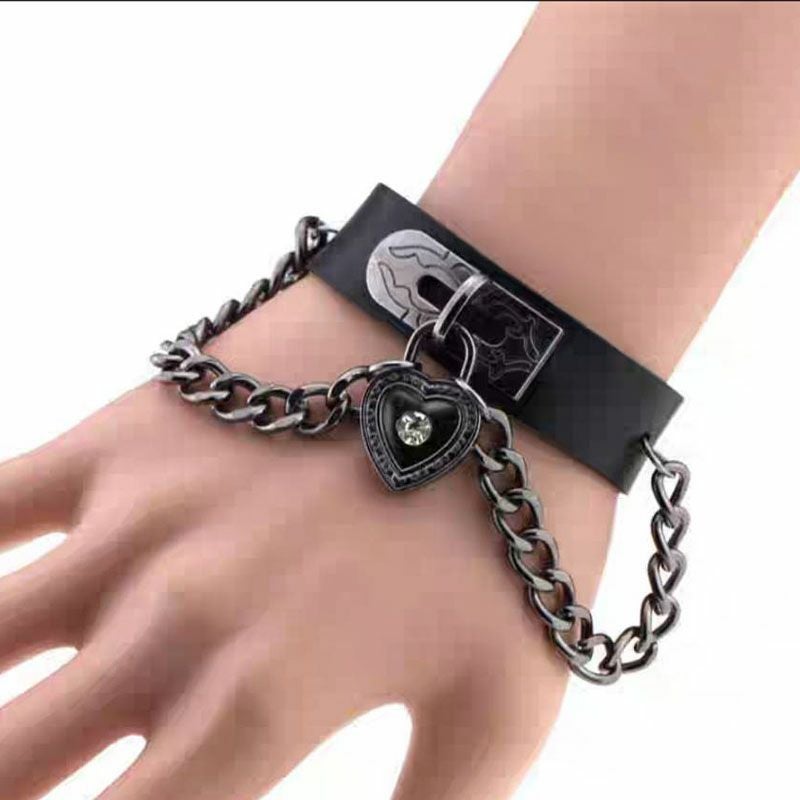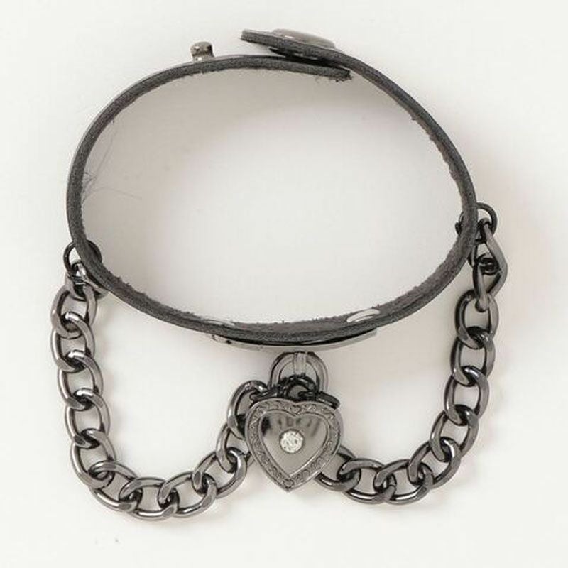マットなフェイクレザー素材に、ハート+チェーンの装飾をあしらったブレスレット。