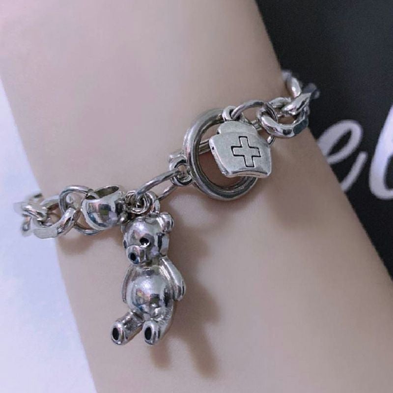 NOVESSEL【ノベセル】からベアチェインブレスレットが入荷。 ベアチェーンブレスレットが登場。キュートなくまモチーフが目をひくデザインブレスレット。 ストリートは勿論、シンプルからカジュアルまで幅広く対応可能なデザインとなっております。 ユニセックスとしても着用可能ですので、是非お試しください!