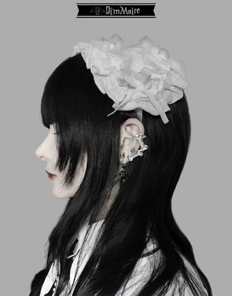 例②軟骨部分のピアスホールにピアスを通し耳たぶにカフスを装着