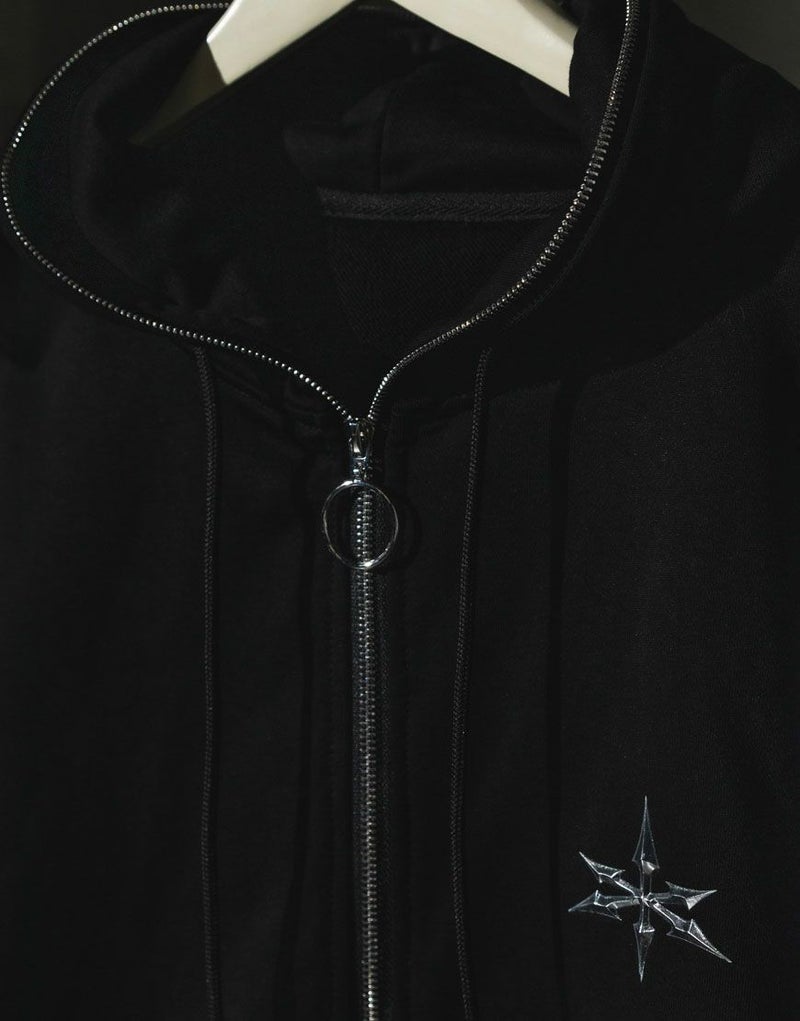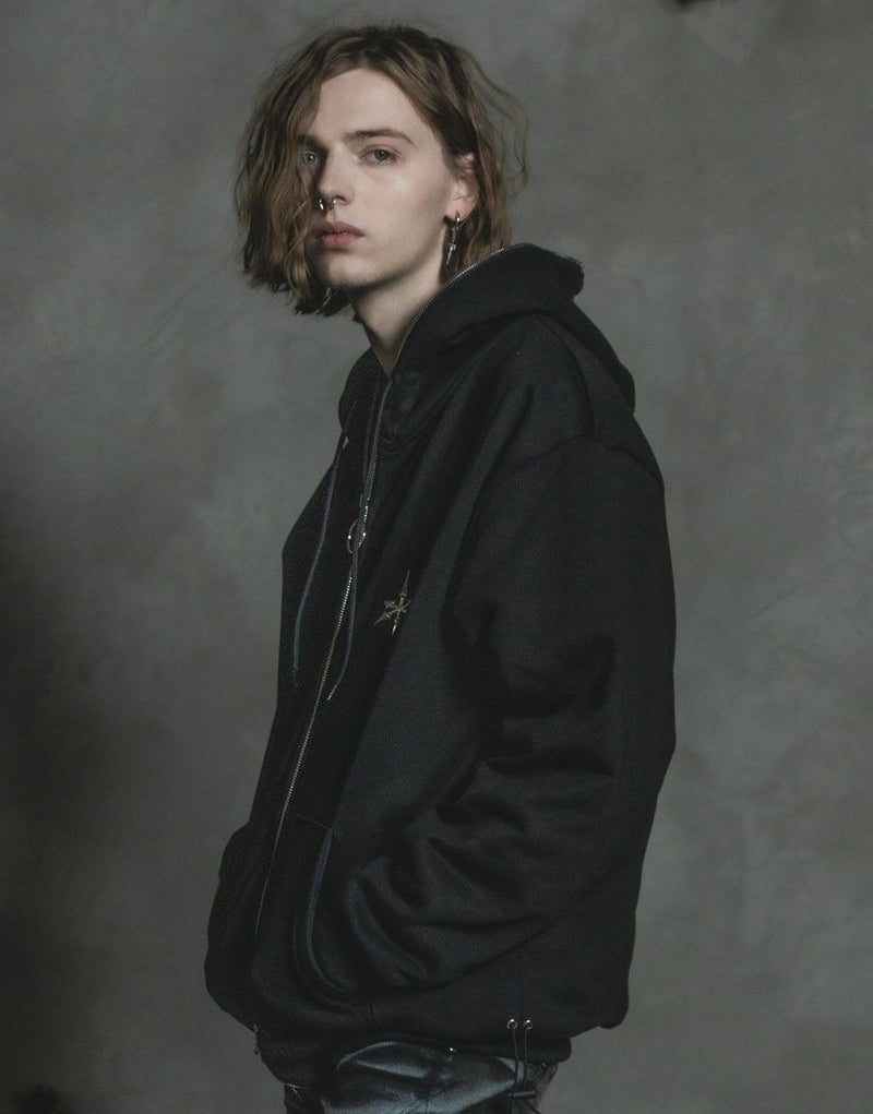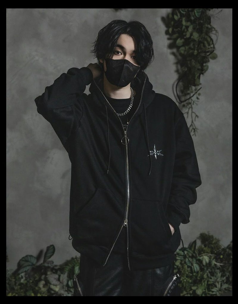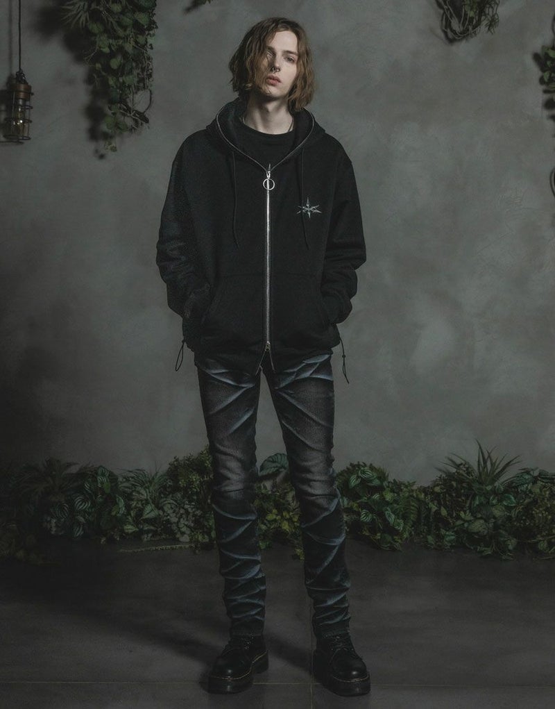 フロントからフードまでを一直線につなぐフルZIP仕様が印象的なスウェットパーカー。