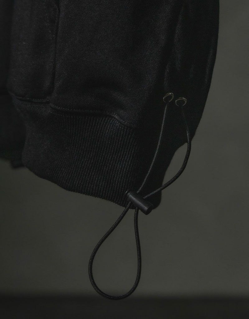両脇にはドローコードを仕込み、シャーリングを効かせることでシルエットの変化を楽しめるデザインに。