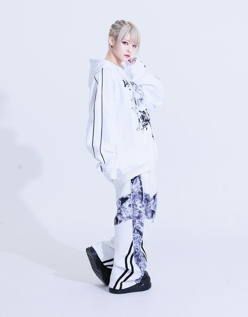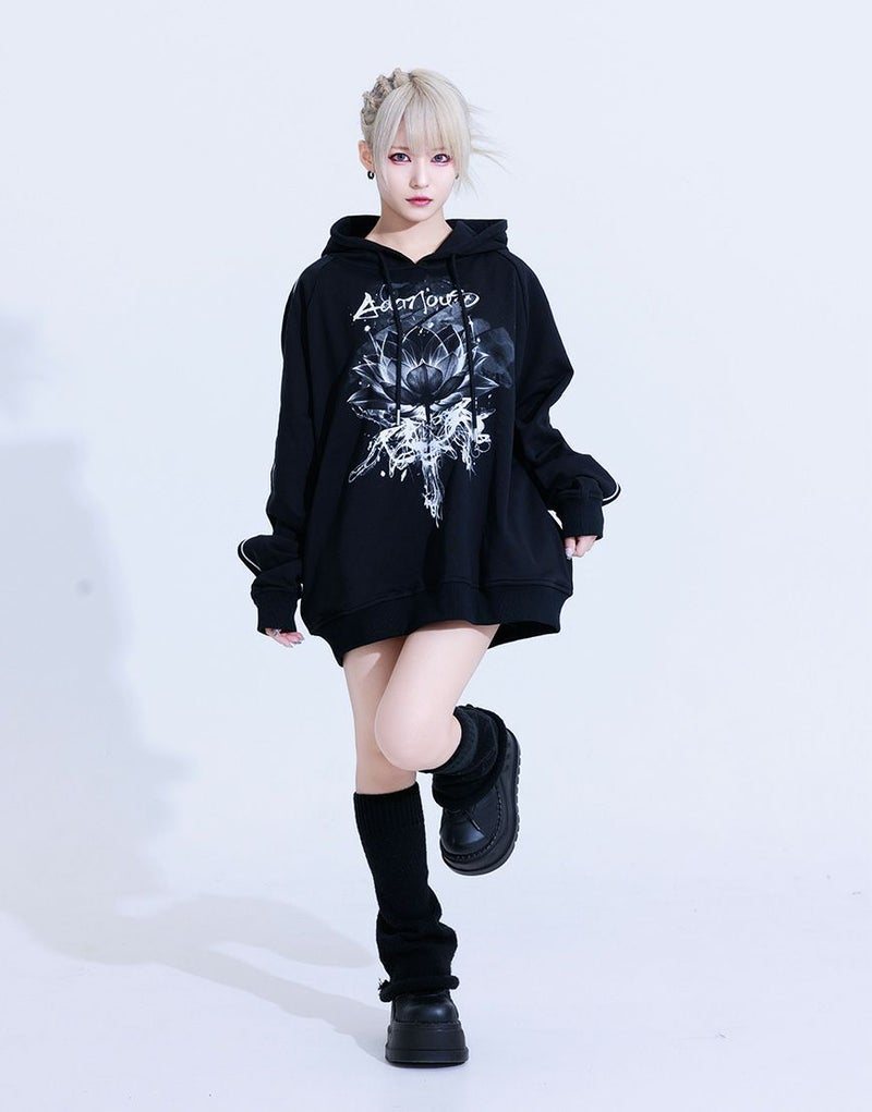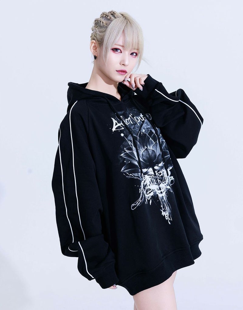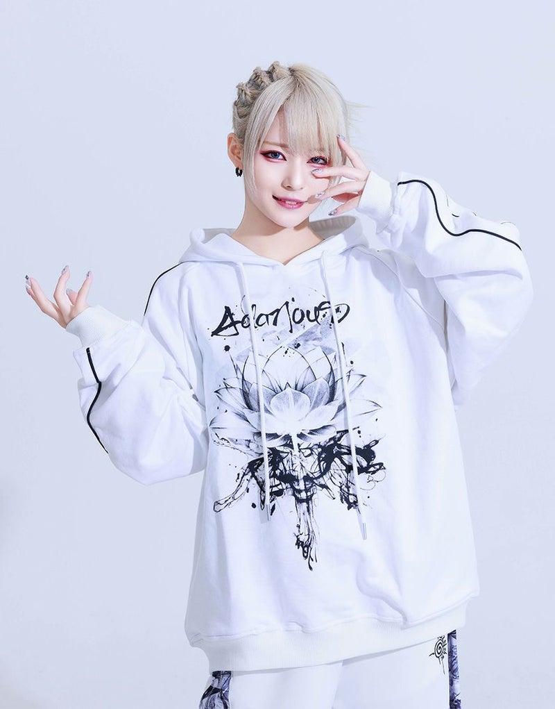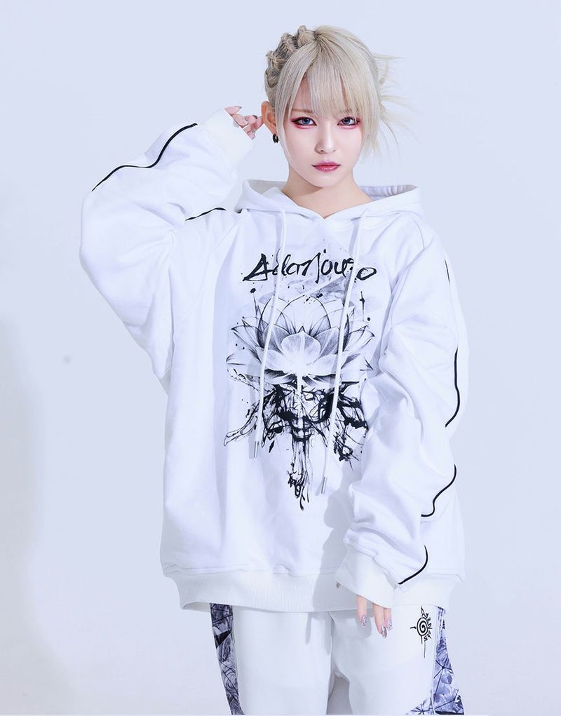 どんな世界でもあなたらしく生きられるような、 強さと美しさの"絶対的守護服" 【AdaNous】 Produced by てのひらえる 袖と背中にパイピングの切り替えを施したスウェットプルパーカーです。 フロントにブランドオリジナルのアートワークをプリント。ビッグシルエットでメンズ、レディースを問わず、ユニセックスに使えてオススメです。