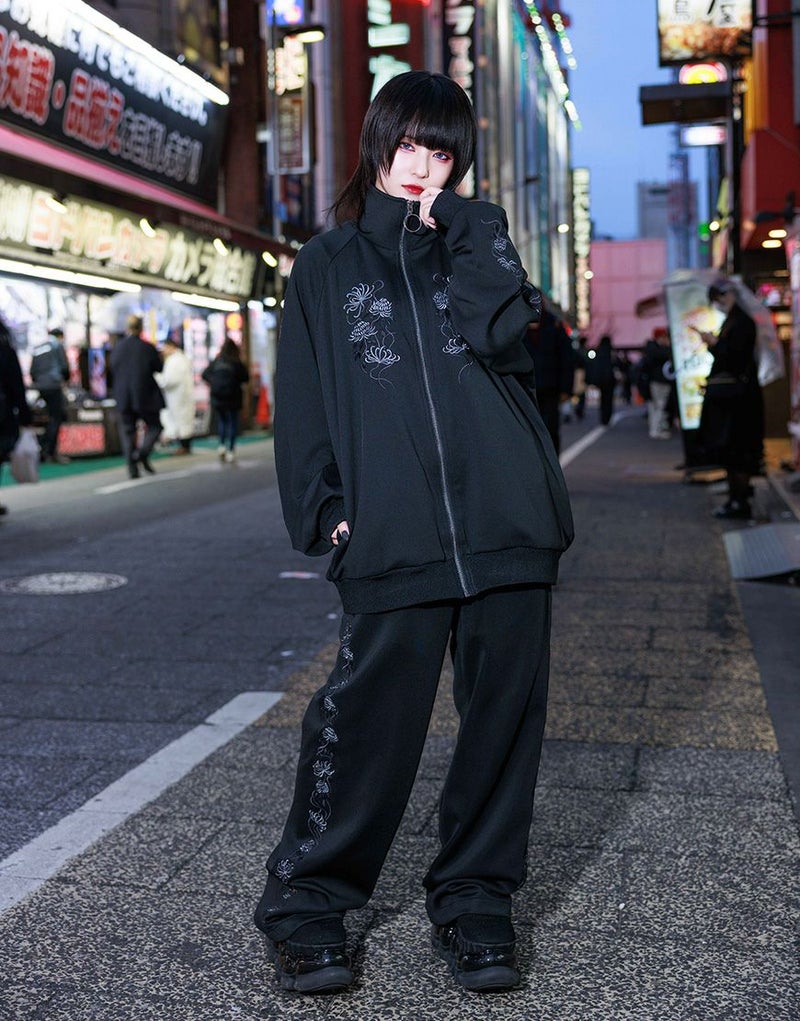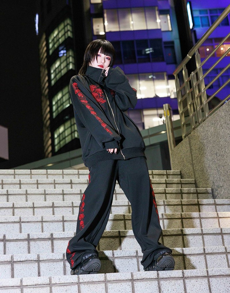 オリエンタルな花柄刺繍を施したトラックジャケットです。