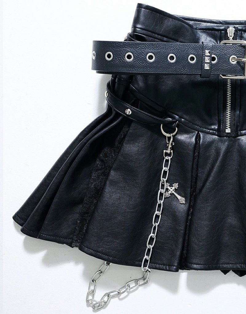 さらに、付属のスタッズベルトが腰回りを強調し、コーディネート全体を締めるアクセントに。