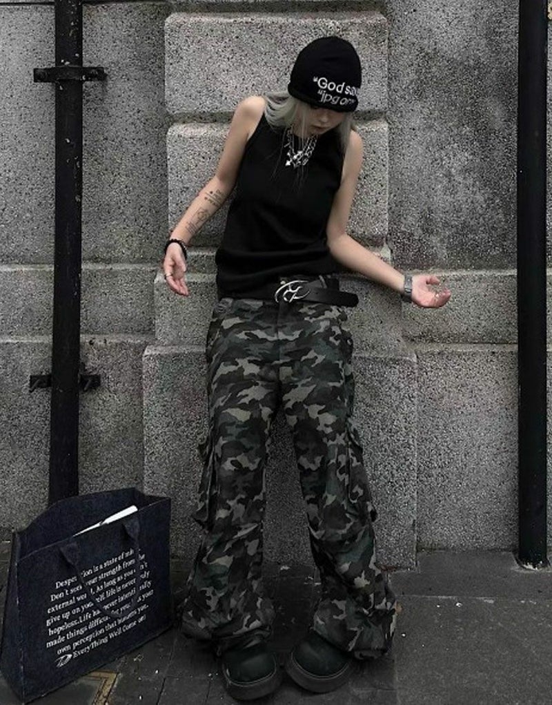 NOVESSEL【ノベセル】から迷彩カーゴパンツが登場しました。 独自のカモフラージュ柄と適度なボリューム感が特徴的なワイドカーゴパンツ。 カジュアル、ストリートまで幅広く対応可能な一着となっております。 ルーズシルエットなのでユニセックスとしても着用可能です。 ※モデル画像は照明などの影響により実際の商品と異なる場合がございます。