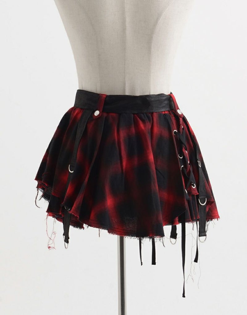ランダムに重ねたフレアデザインが特徴のレイヤードスカート。