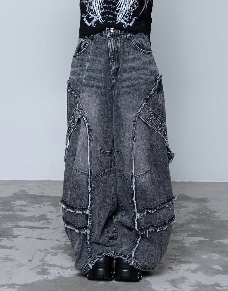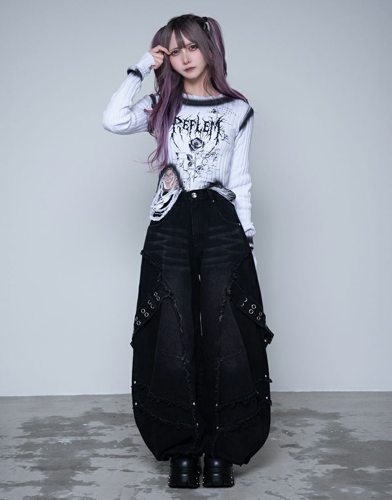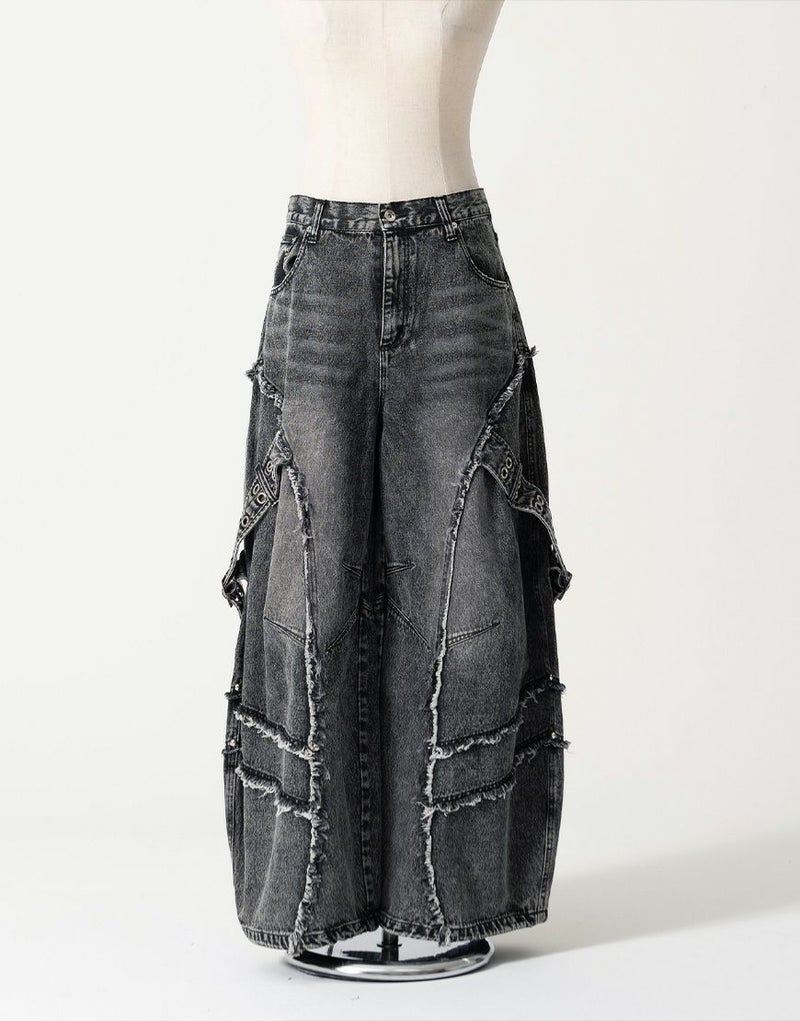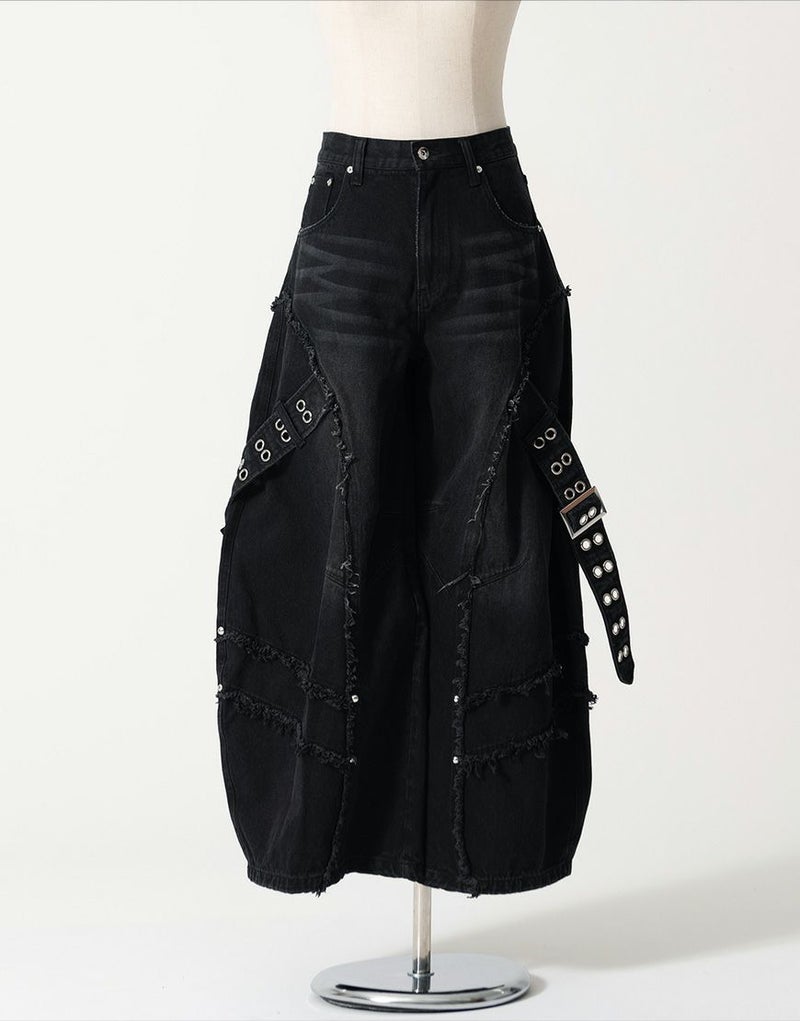 立体的に膨らみを持たせたバレルレッグデザインが、グランジ感とモードな雰囲気を兼ね備えた一本です。