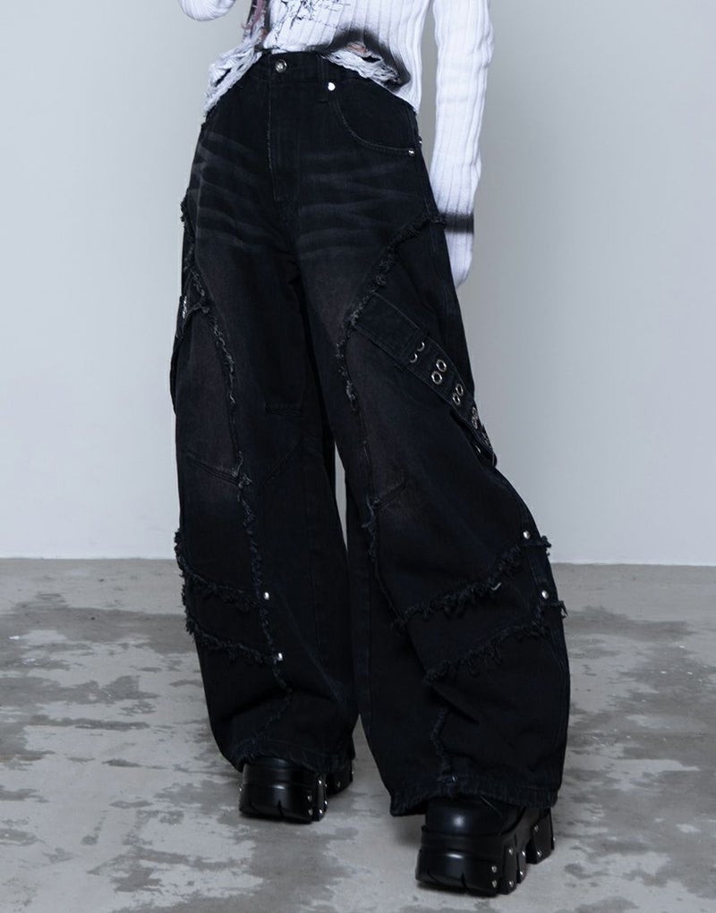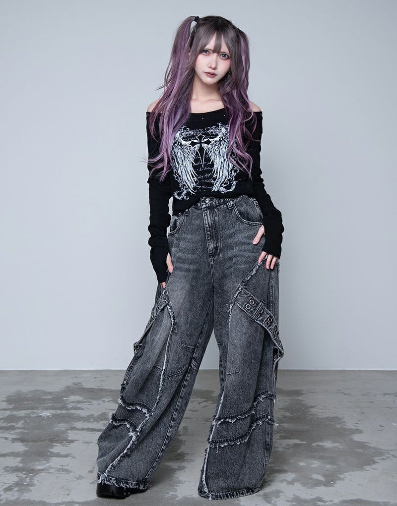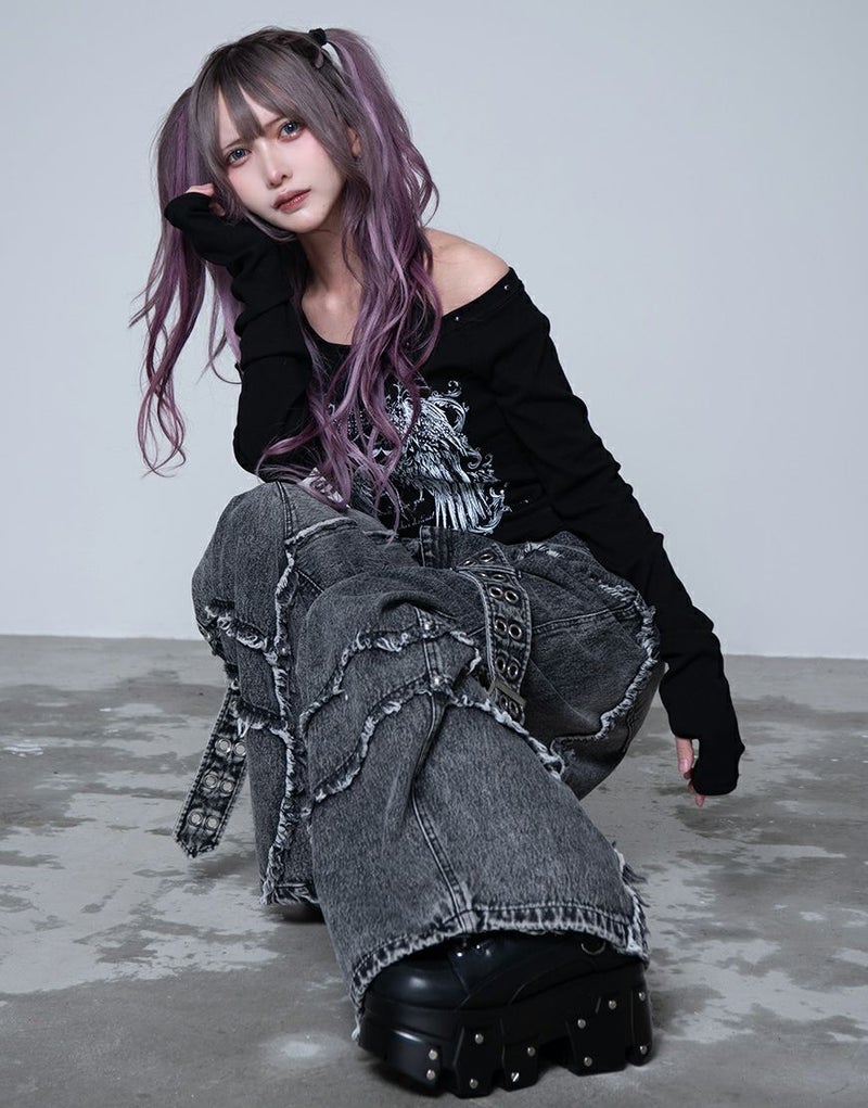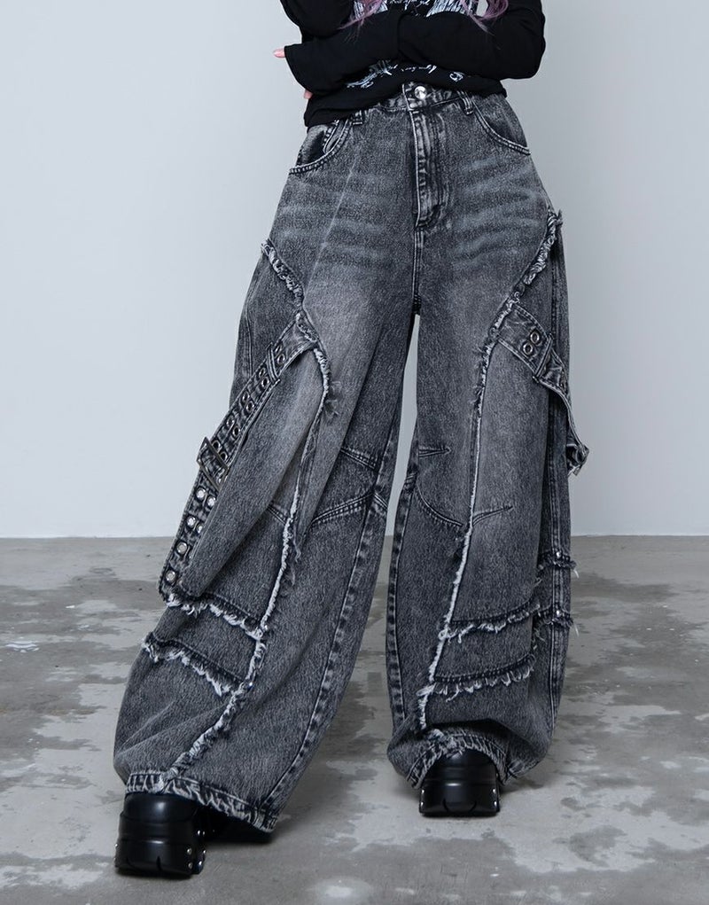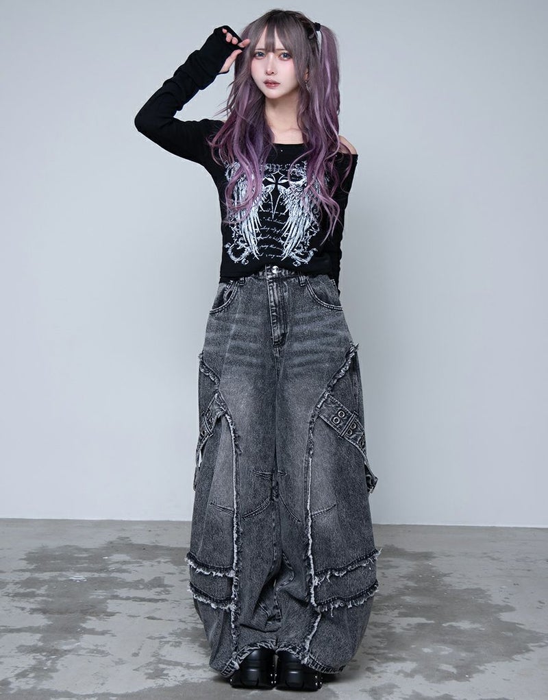立体的に膨らみを持たせたバレルレッグデザインが、グランジ感とモードな雰囲気を兼ね備えた一本です。