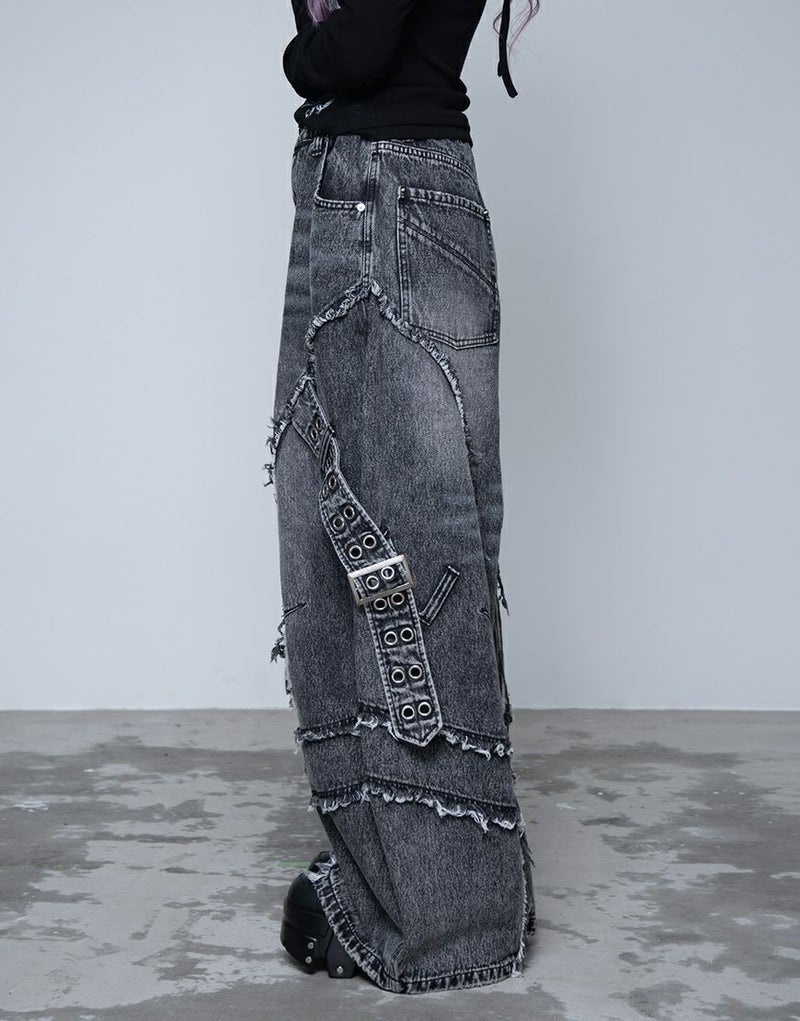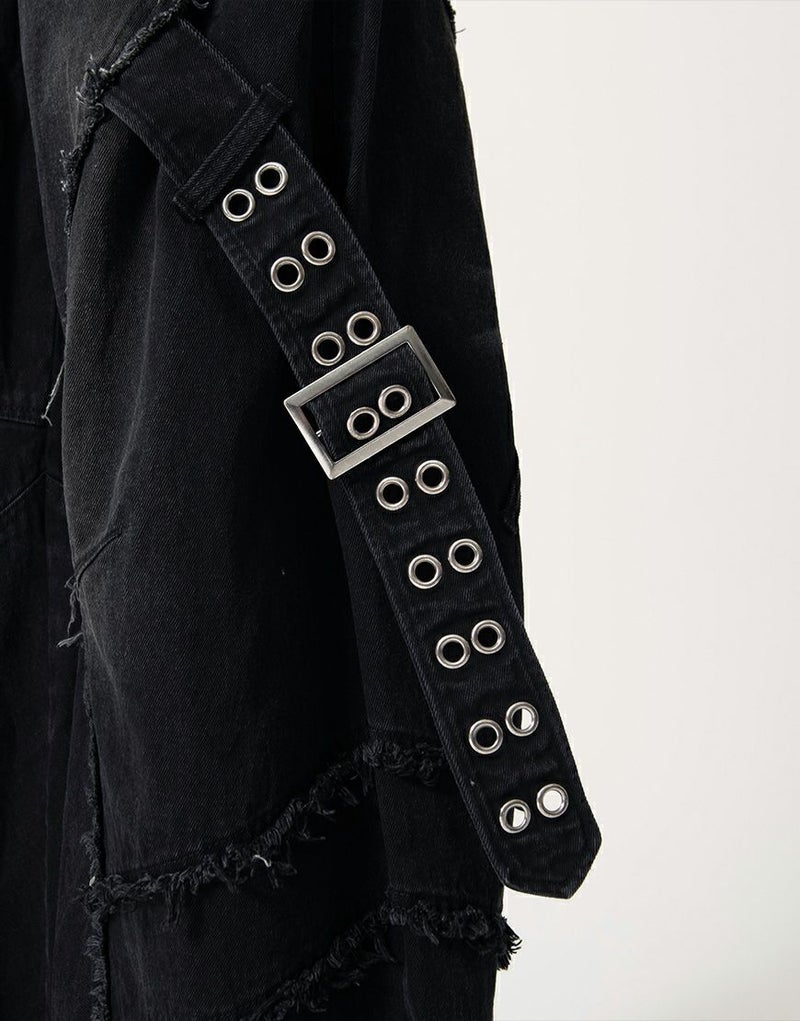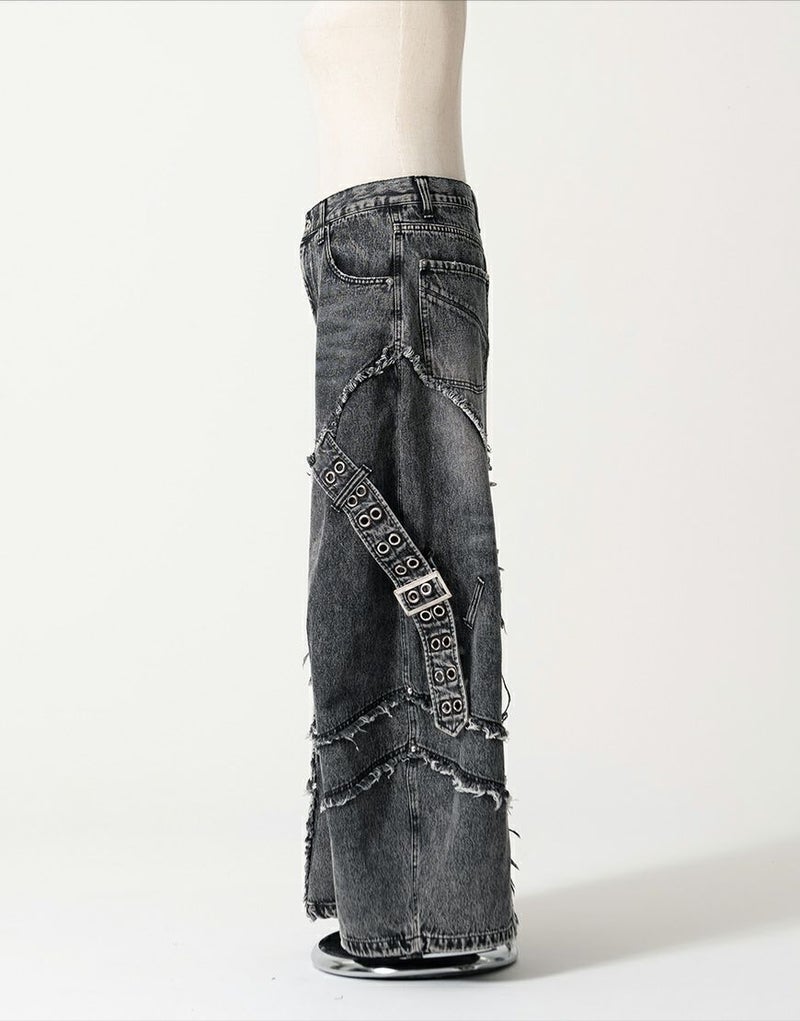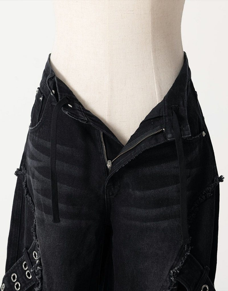 脇にはハトメをあしらったデザインベルトを配置し、ハードなアクセントをプラス。