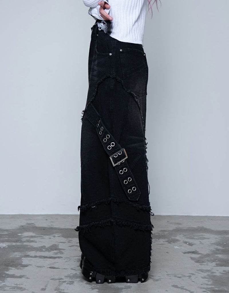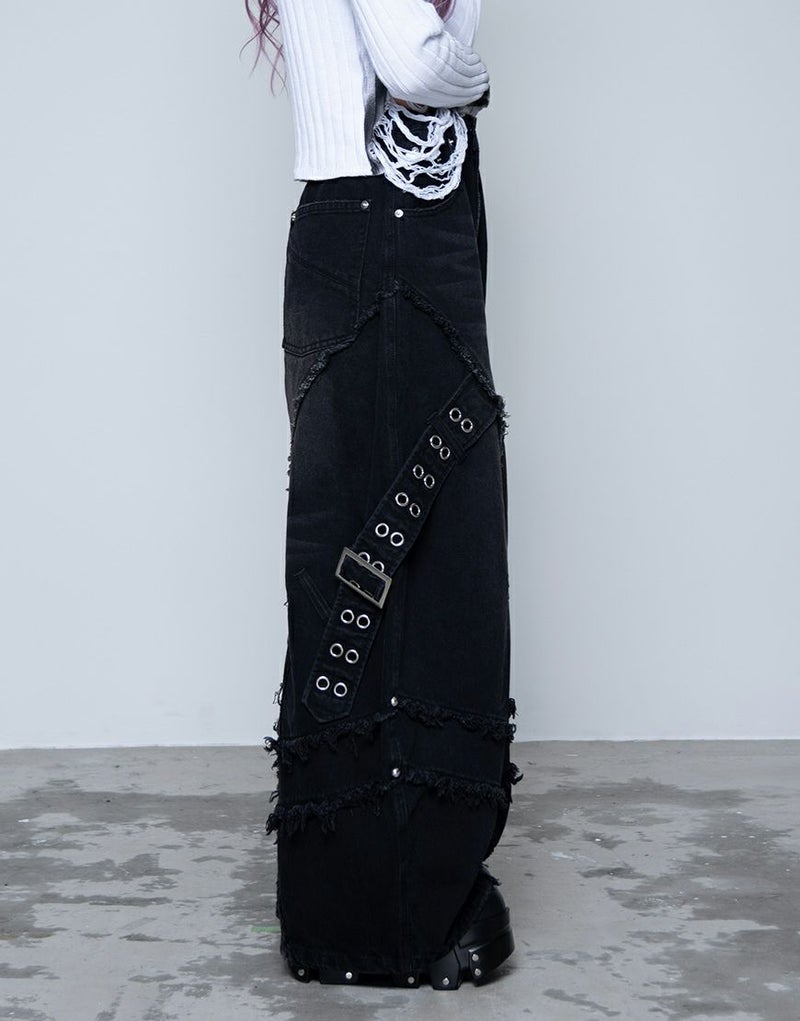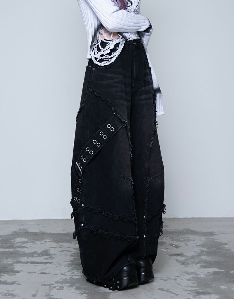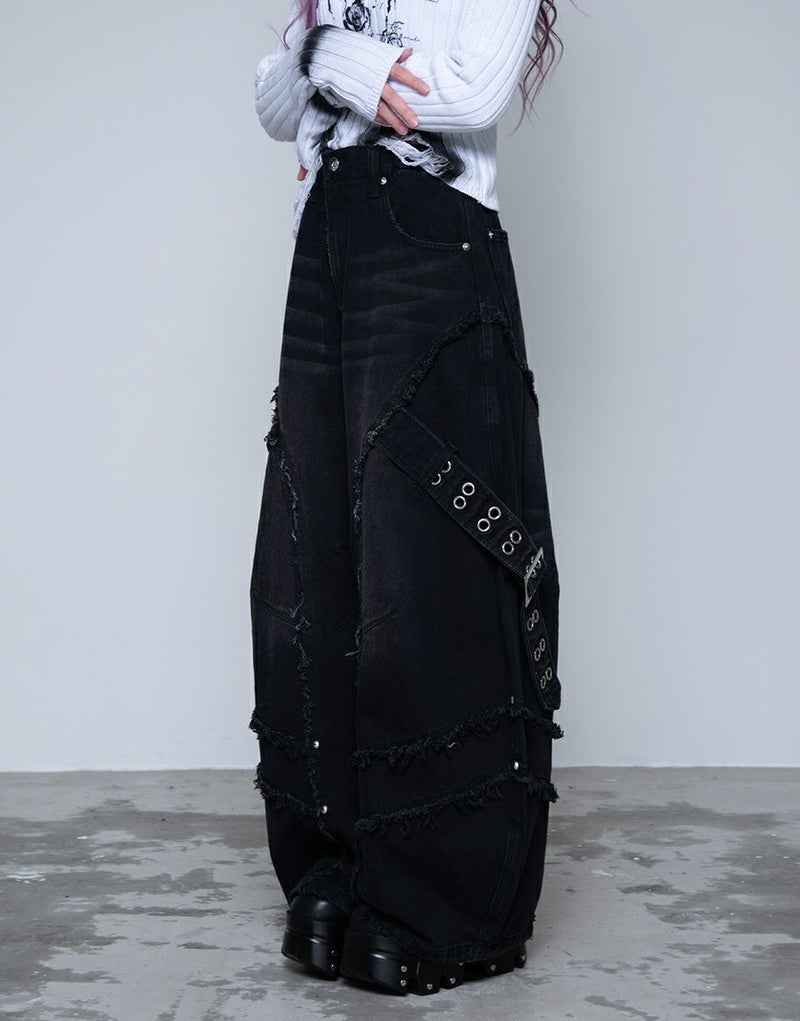 脇にはハトメをあしらったデザインベルトを配置し、ハードなアクセントをプラス。