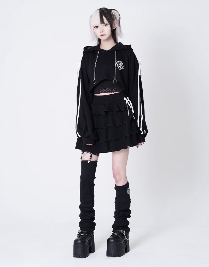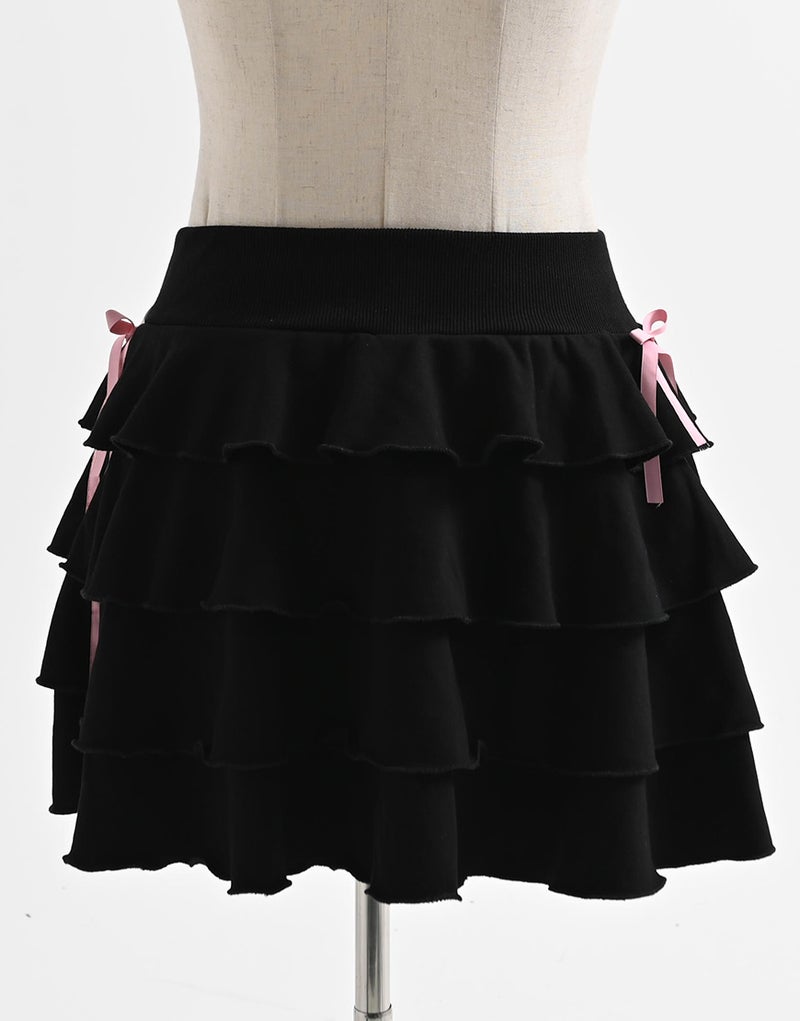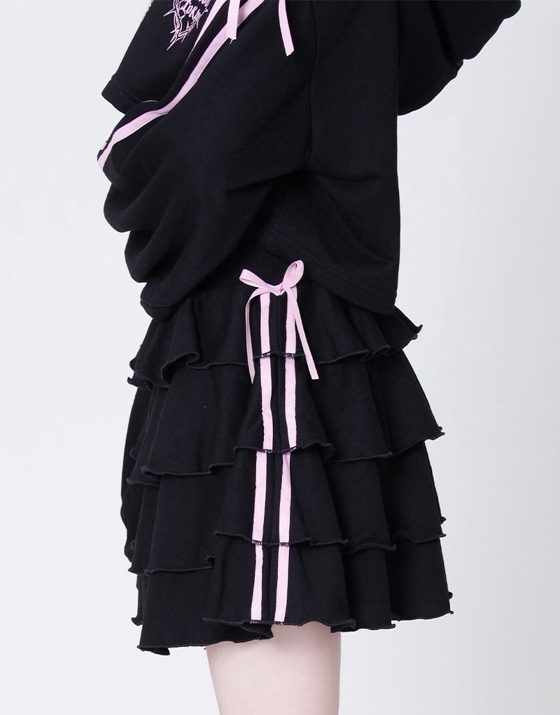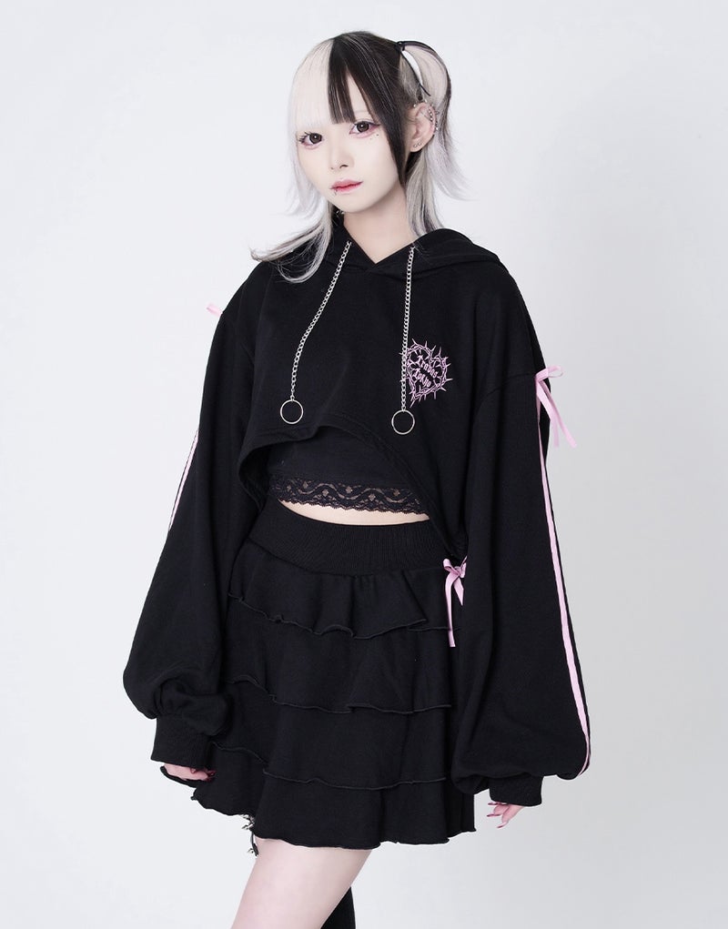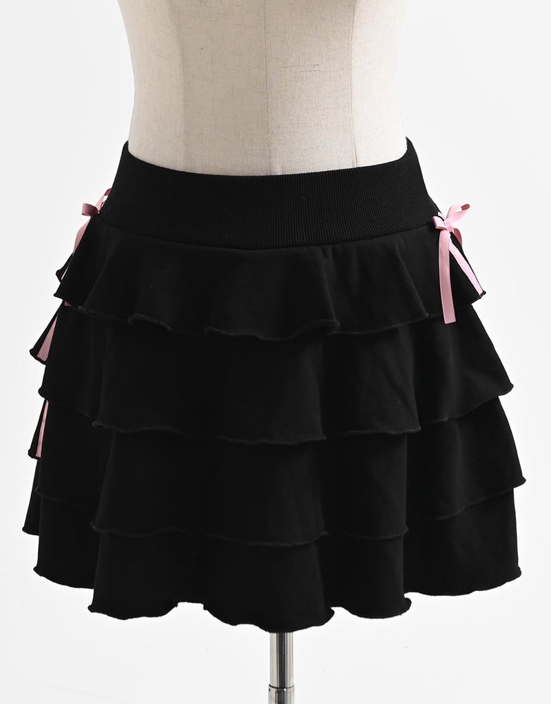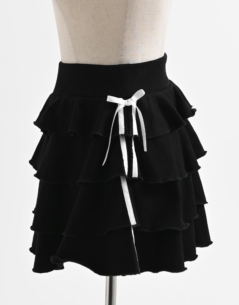 動くたびに揺れるシルエットが可愛らしさを演出しつつ、ブラックベースで甘くなりすぎない絶妙なバランスに。
