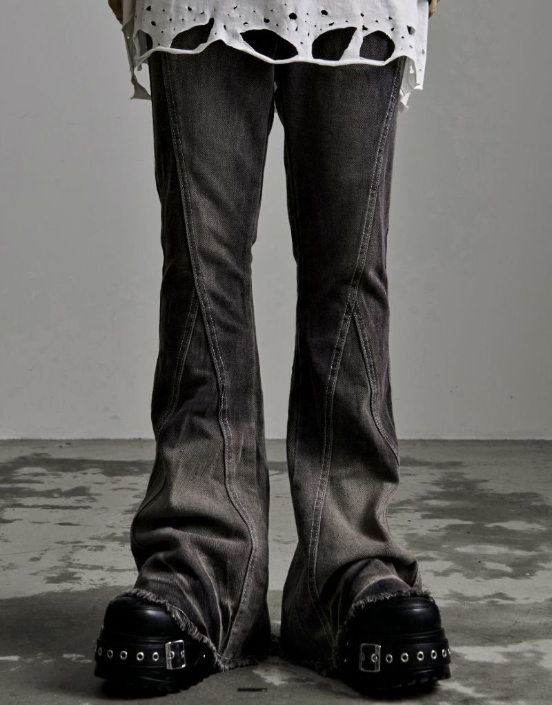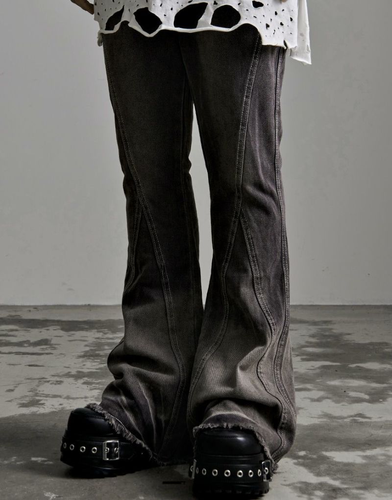 NOVESSEL【ノベセル】からグラデーション加工フレアデニムパンツが登場しました。 独自のグラデーション加工が目をひく個性派フレアデニムパンツ。 ストリートは勿論、グランジ系のスタイリングまで幅広くお使いいただけます♪ ユニセックスとしても着用可能ですので、是非お試しください! ※1点1点色味や加工感に若干の個体差がございます。
