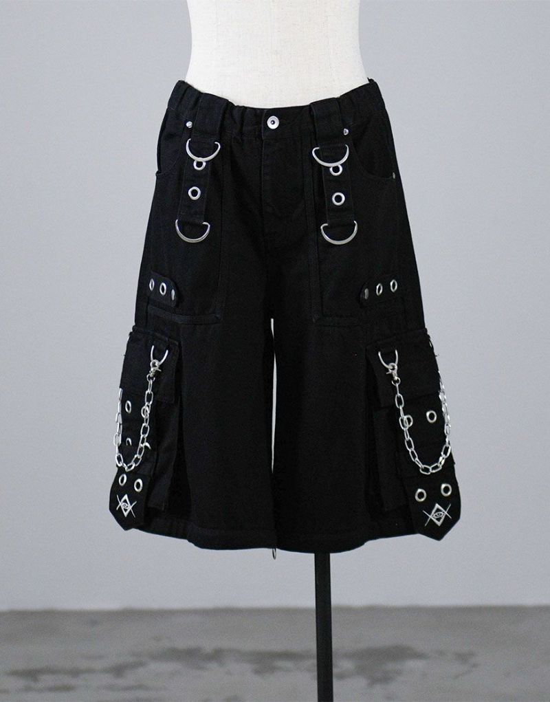 随所にハトメデザインやDカンやチェーンデザインを配置した特徴的なデザイン。
