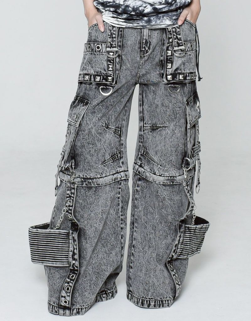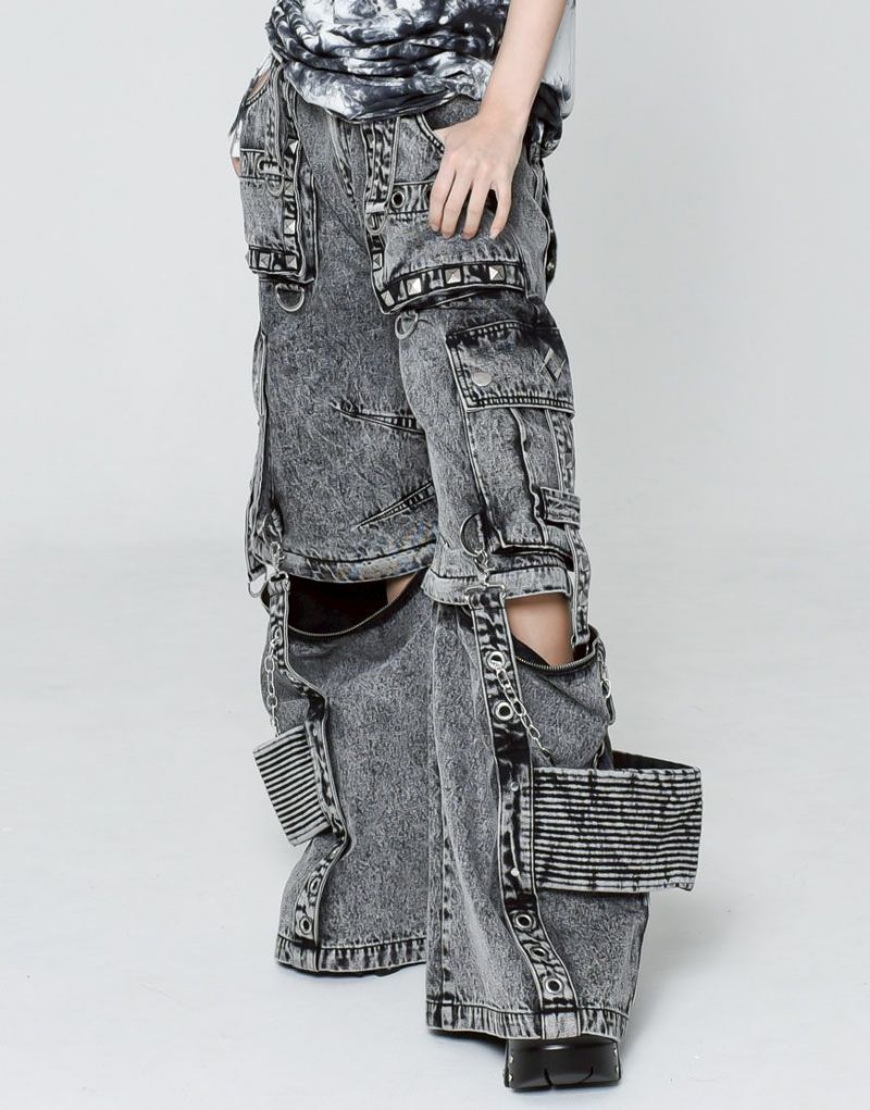膝部分にファスナーがありハーフパンツ風にもアレンジ可能なワイドシルエット2WAYカーゴパンツ。