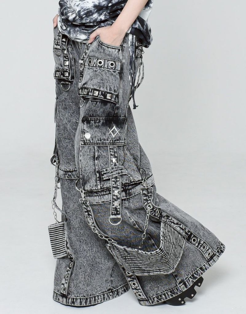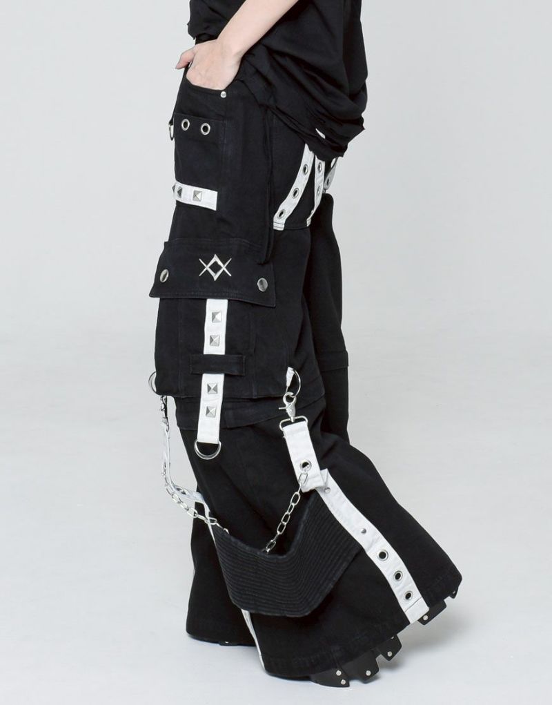 随所にスタッズやチェーンデザインを配置した特徴的なデザイン。