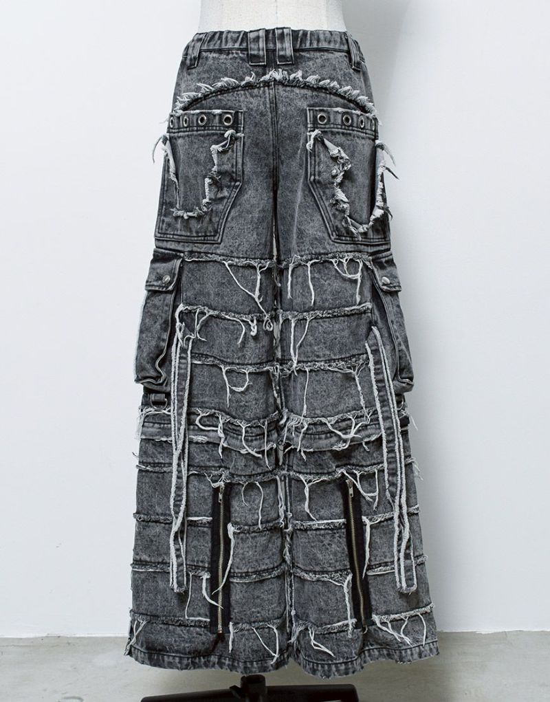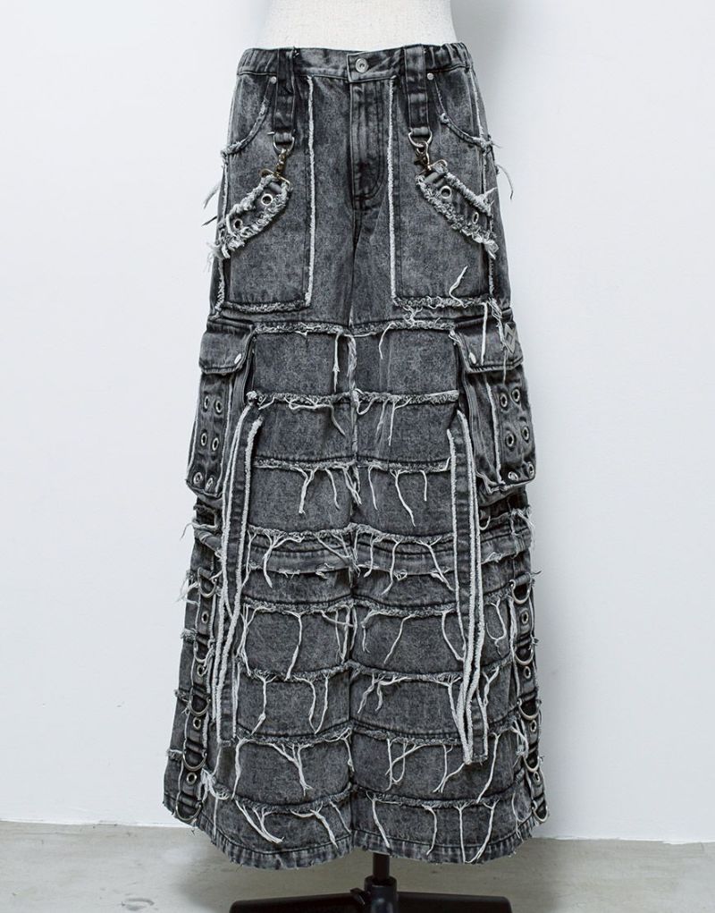 12ozデニムを使用し、段ごとに重ねたようなレイヤード風シルエットが唯一無二の存在感を放ちます。