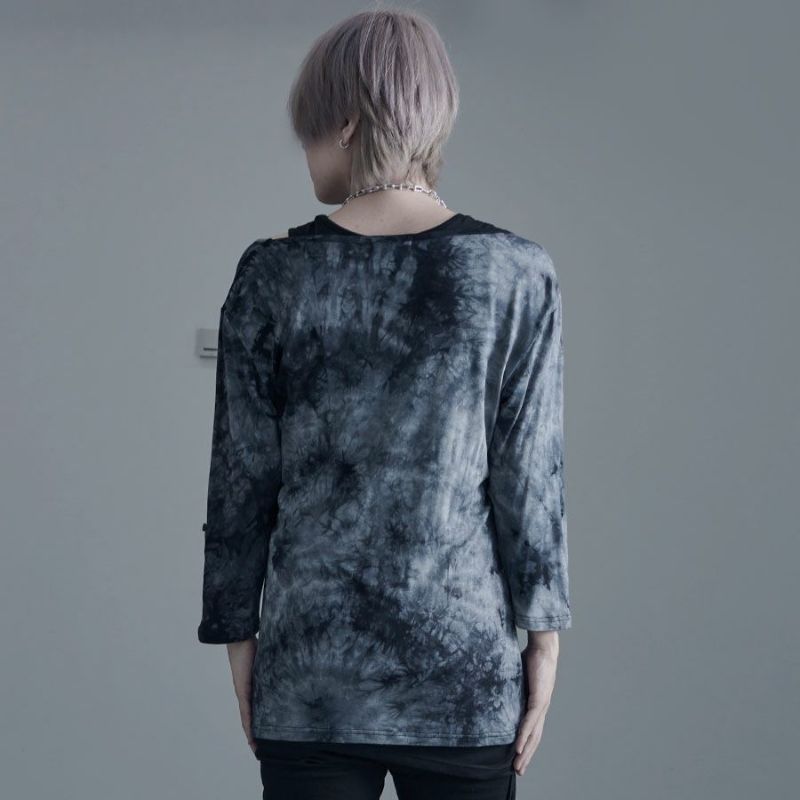 ネック周りを広めに設定したタイダイ総柄のプリントカットソー