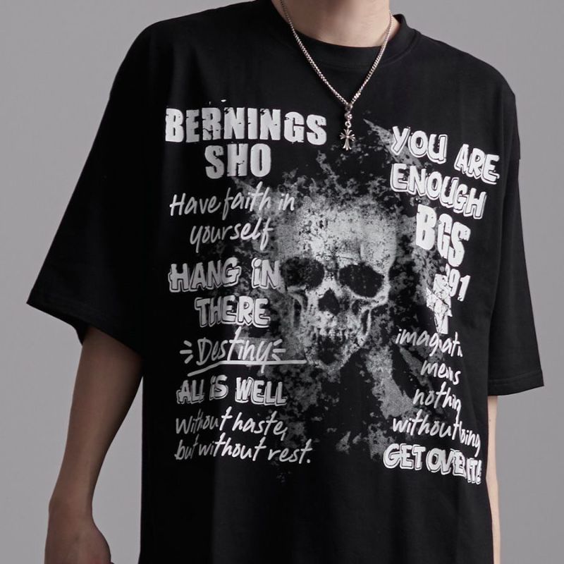 スカルとともに様々なテキストがプリントされエモい平成グランジファッションにピッタリです。