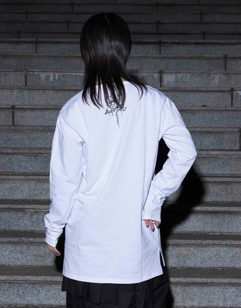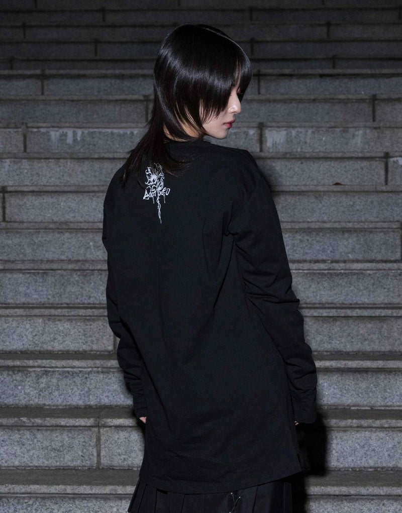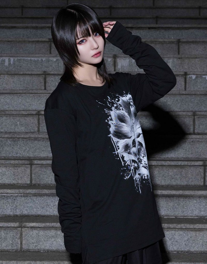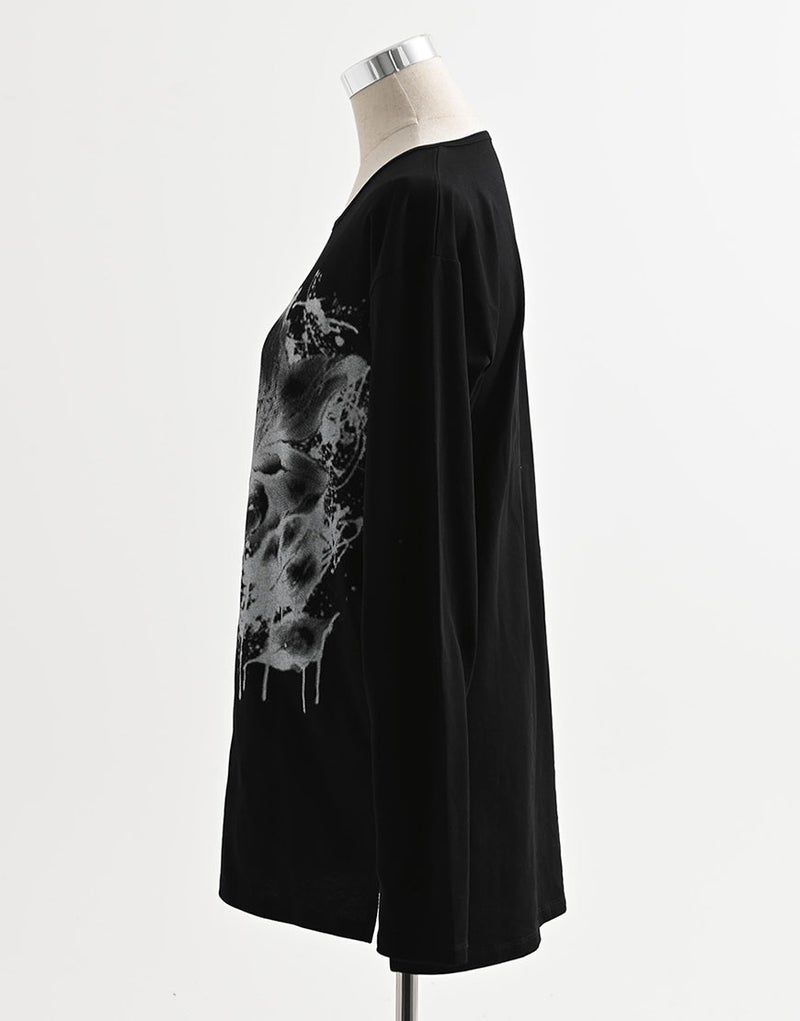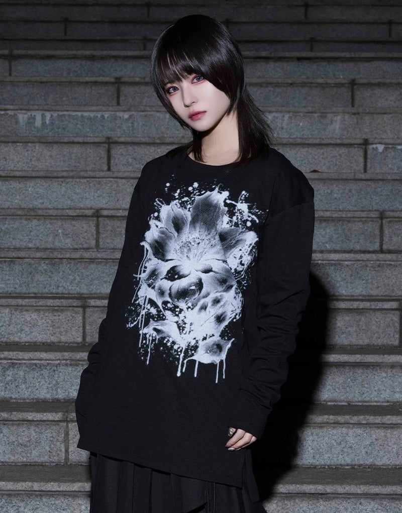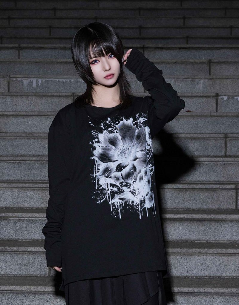 水墨画調のフラワーアートを大胆に落とし込んだ、存在感のあるロングスリーブTシャツ。