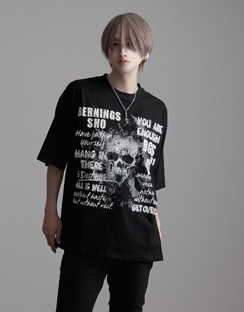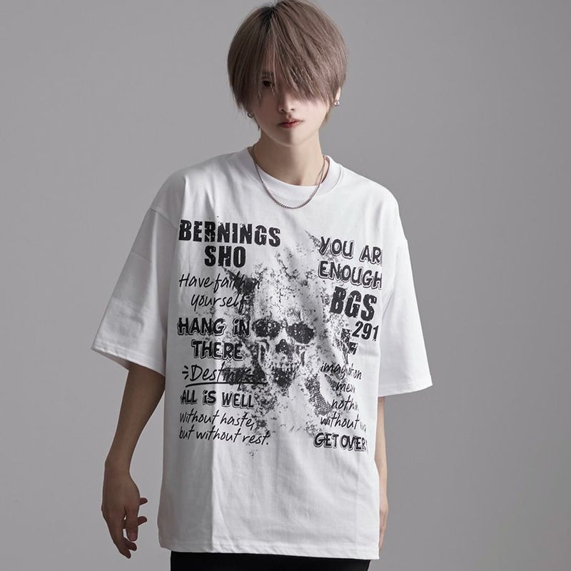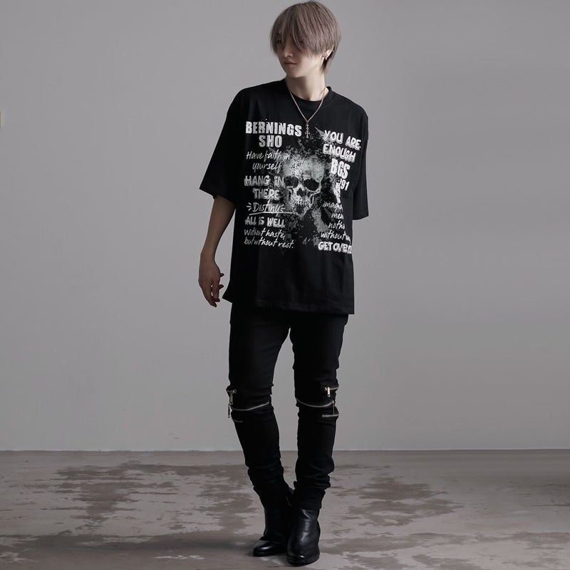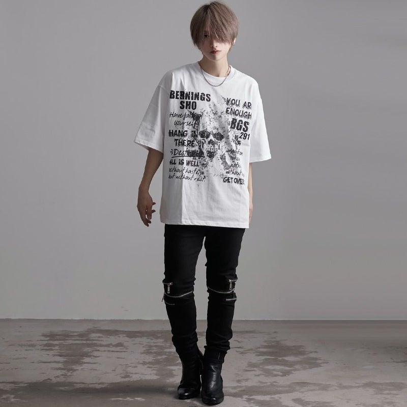 スカルとともに様々なテキストがプリントされエモい平成グランジファッションにピッタリです。