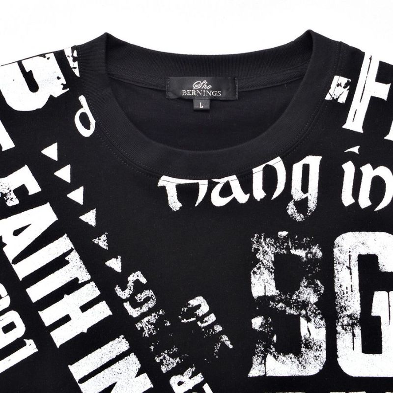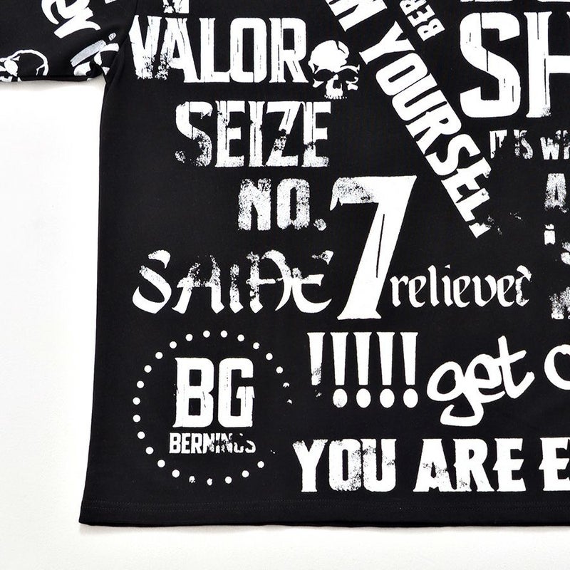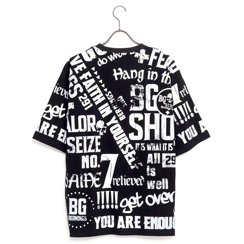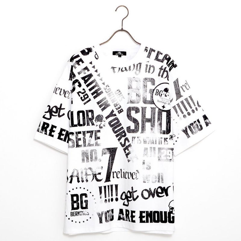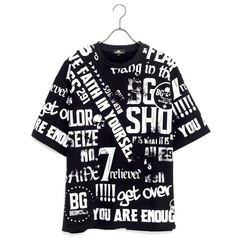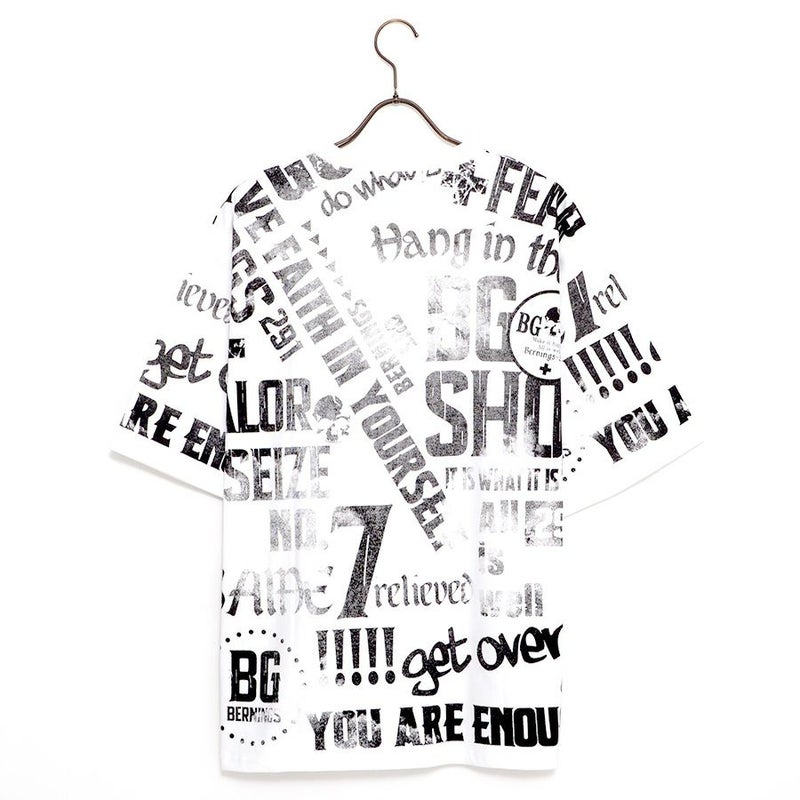 かすれたようなグランジテイストのテキストがフロント、バック全面にプリントされた半袖Tシャツです。