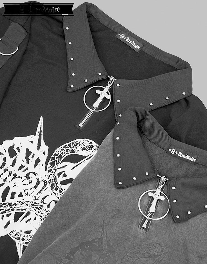 DimMoireオリジナル十字架ジップチャーム、スタッズ、Dカンなどを使用したユニセックスアイテムです.