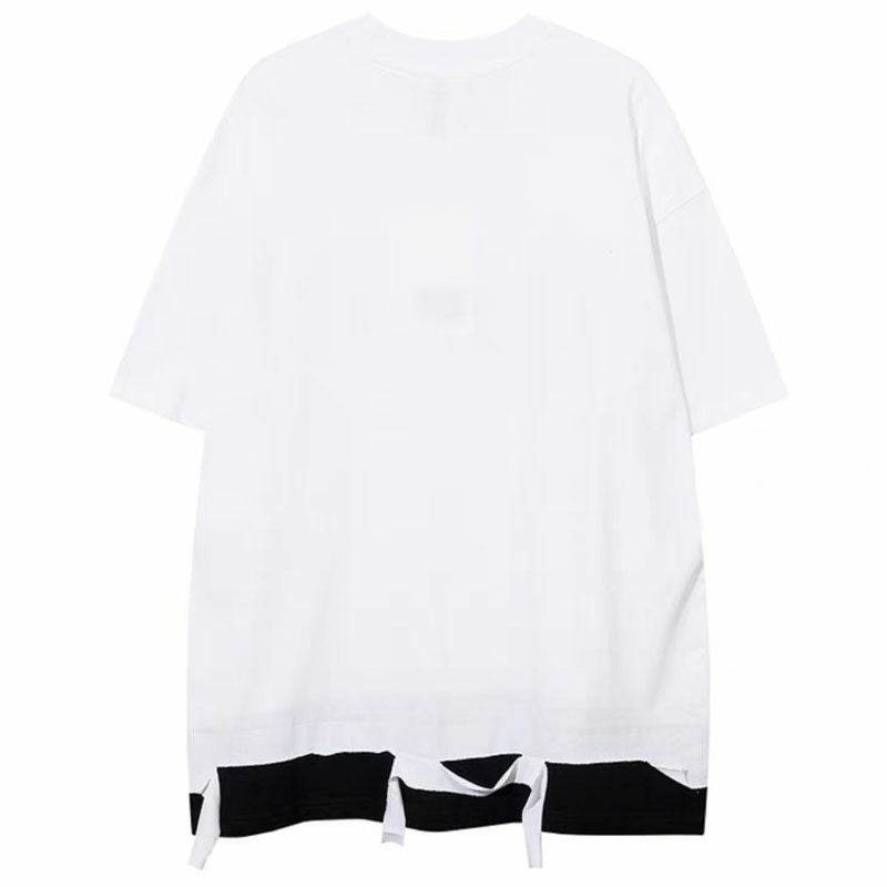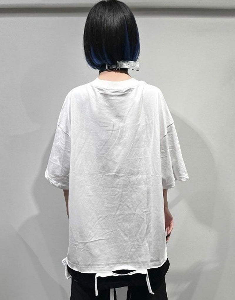 インパクトある2連使いチェーンをネックに配置したフェイクレイヤード半袖TEE。
