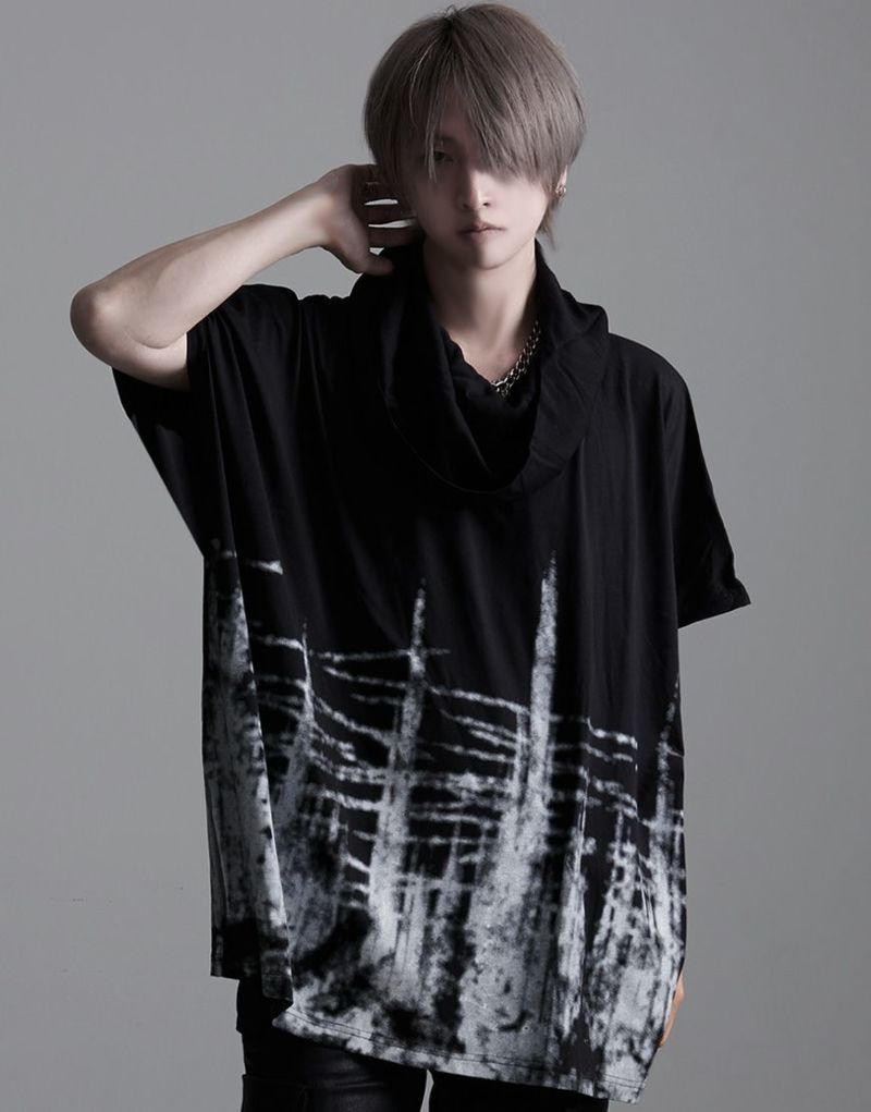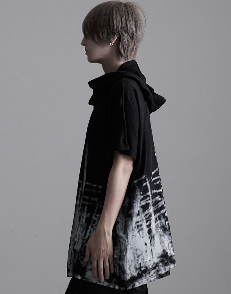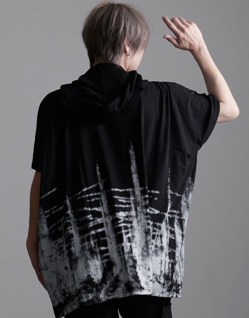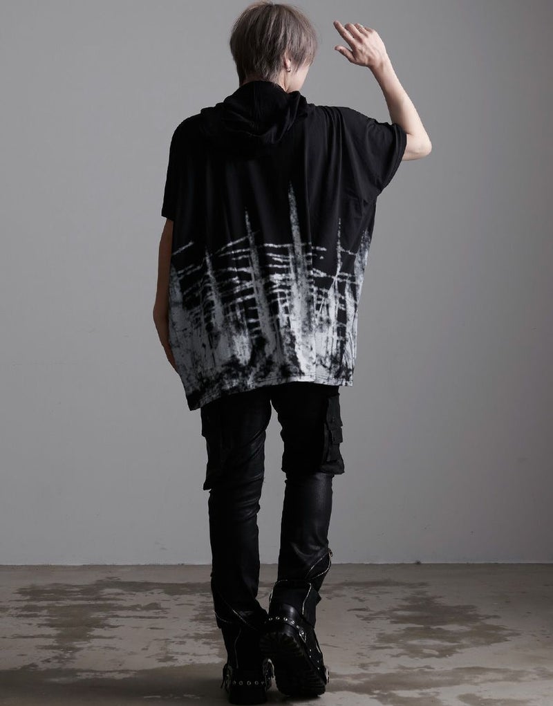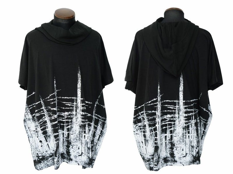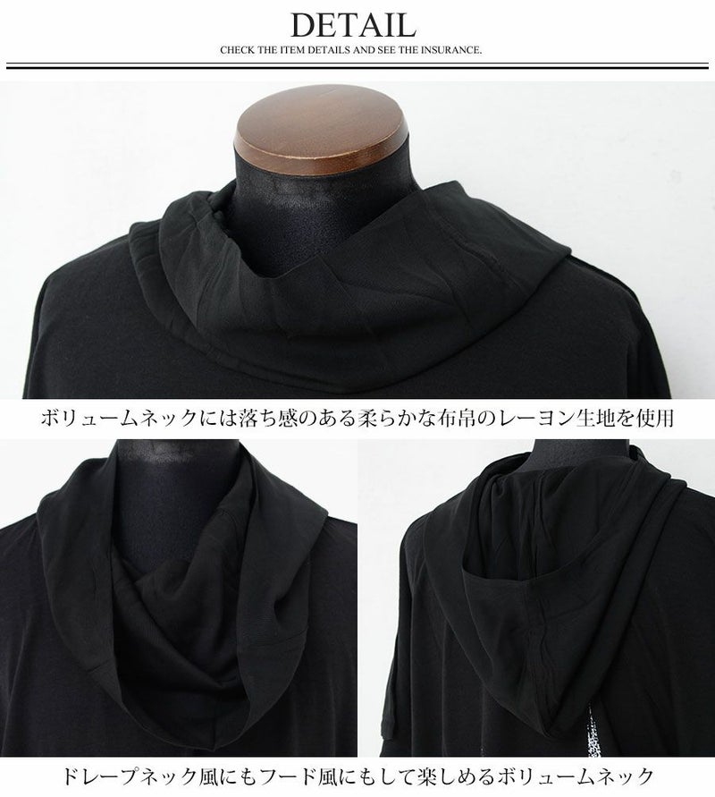 落ち感のある柔らかな綿レーヨン生地を使用したフード付きドルマンビッグTシャツです。