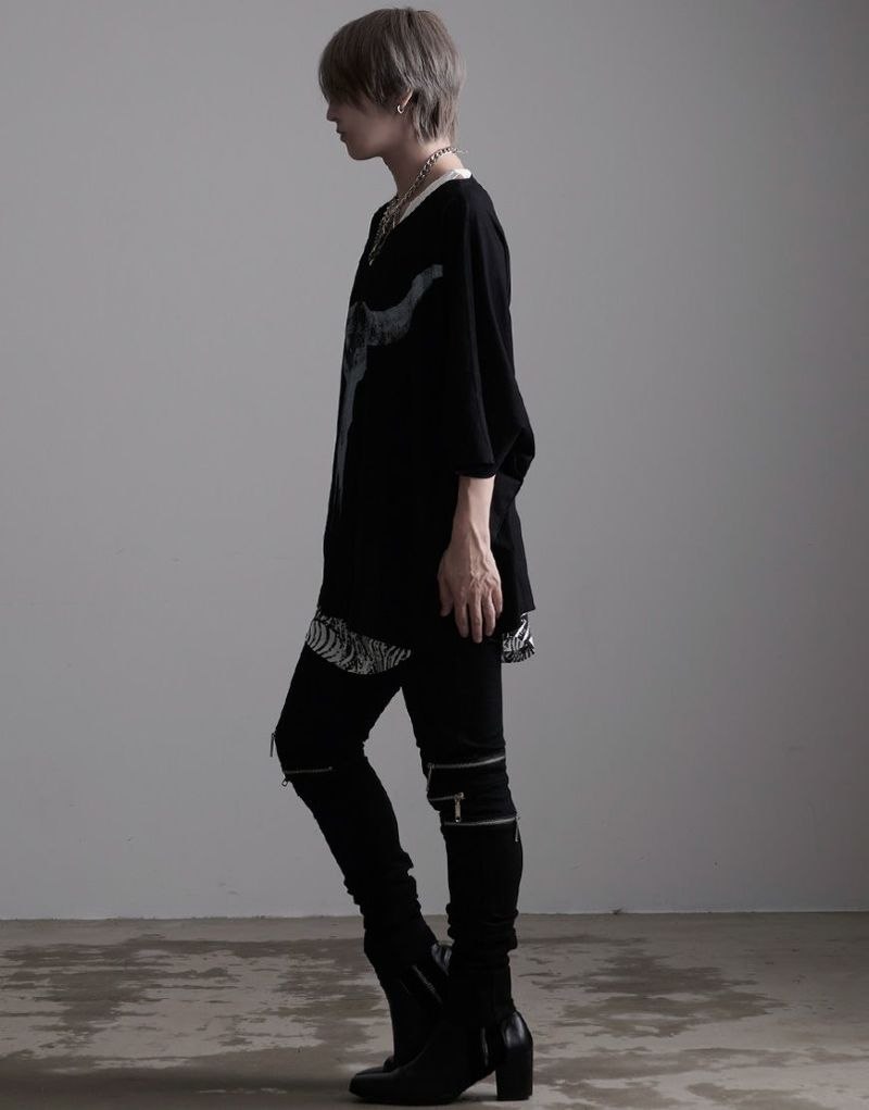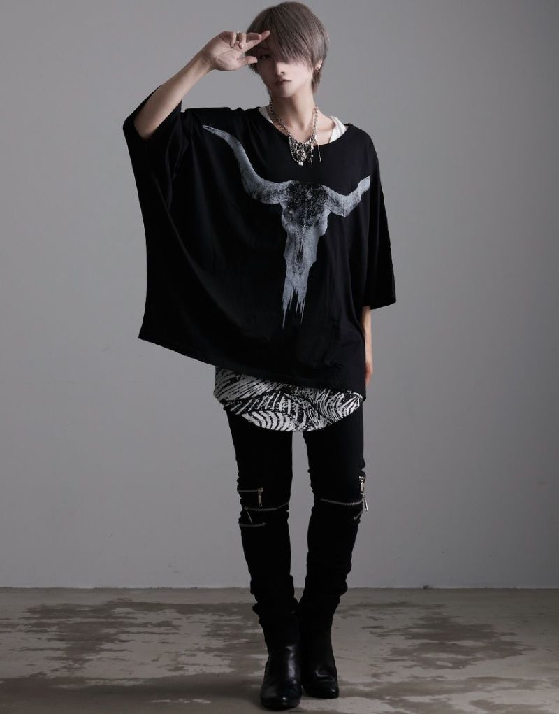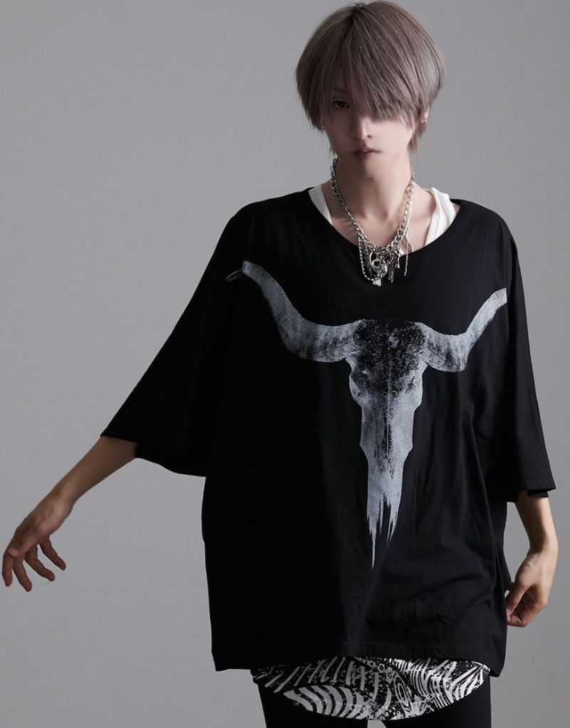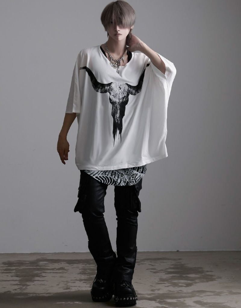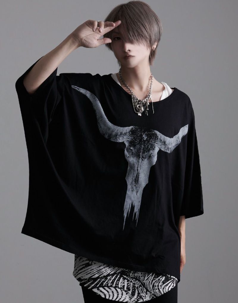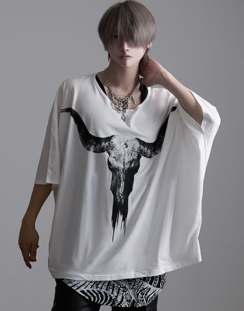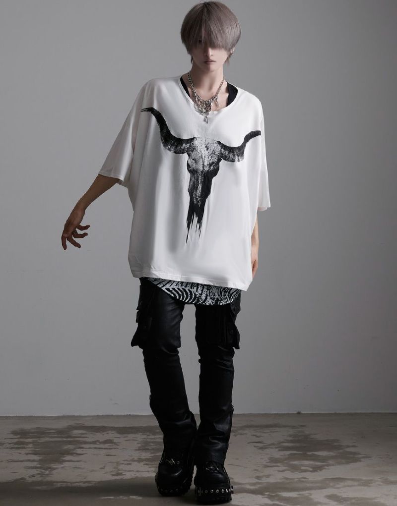斬新な羊スカルをグラフィックに脇腹部分にもプリントを配置したインパクトあるデザイン。