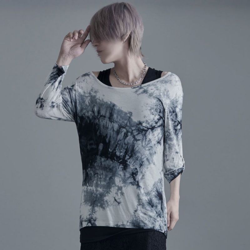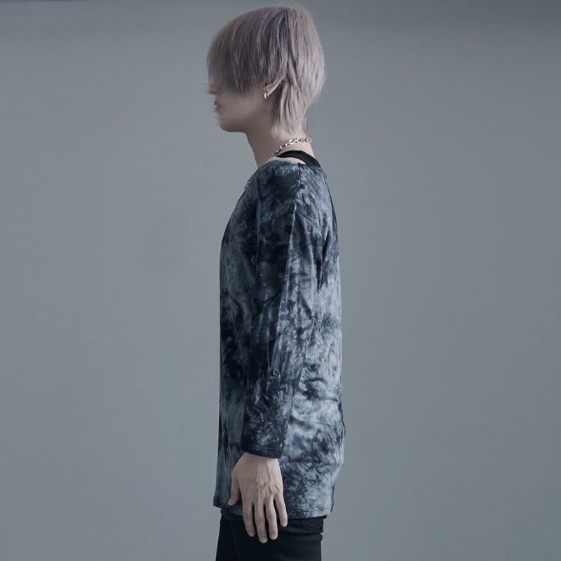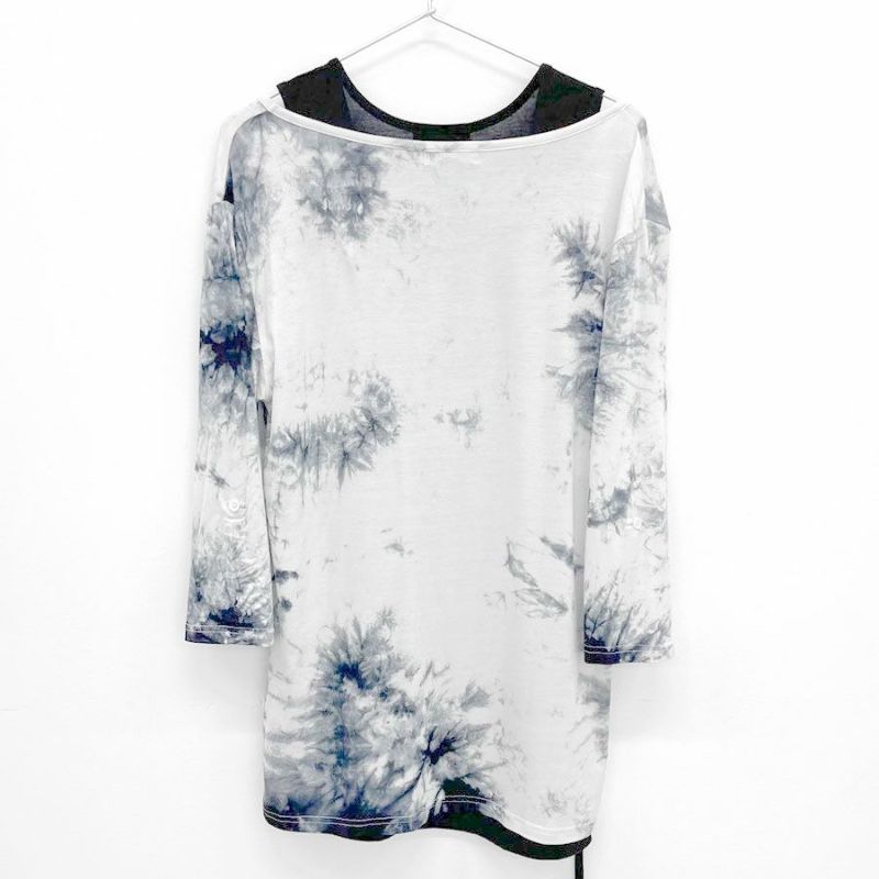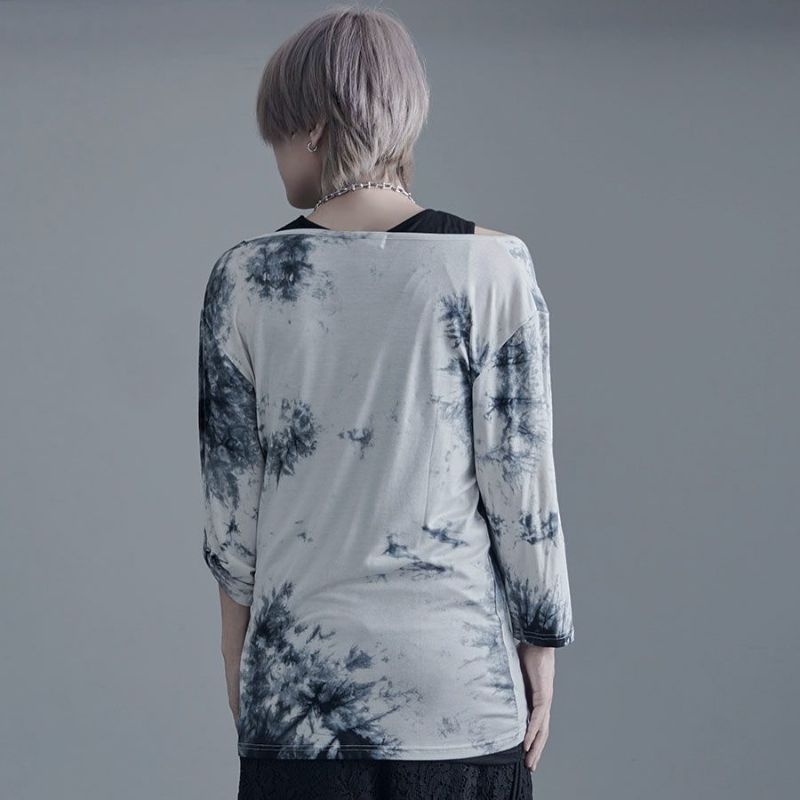 ネック周りを広めに設定したタイダイ総柄のプリントカットソー