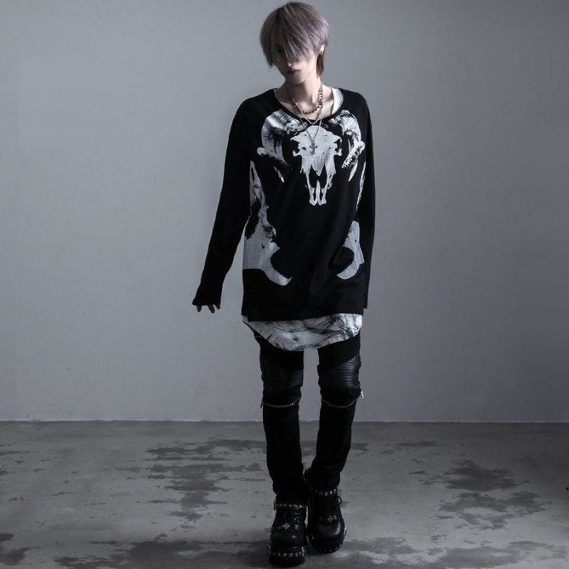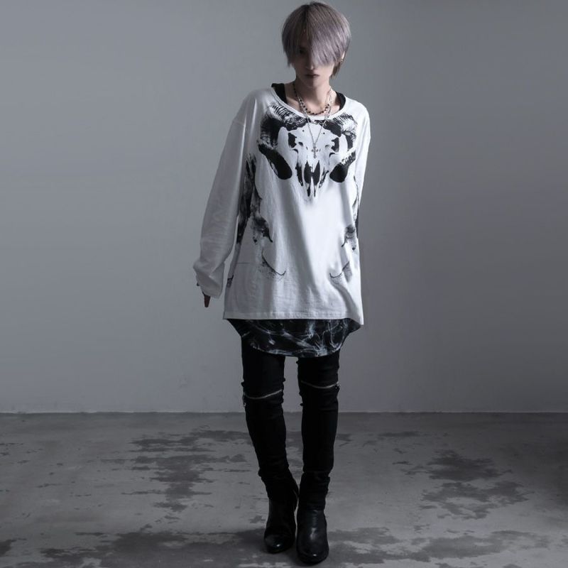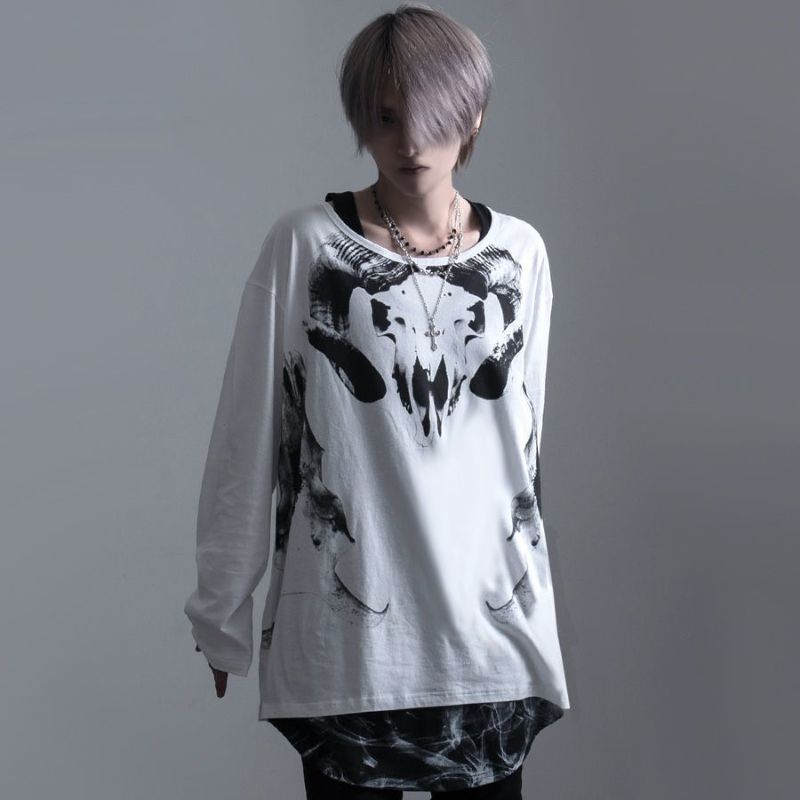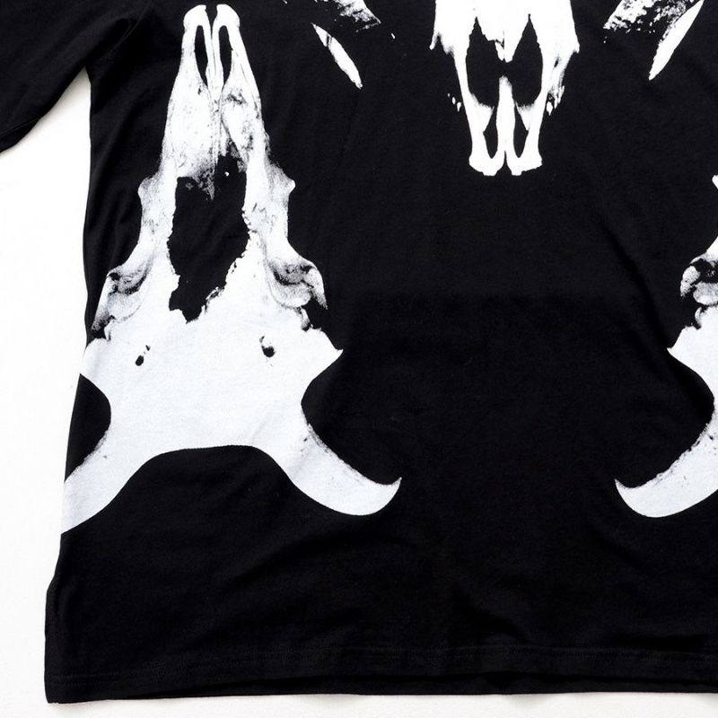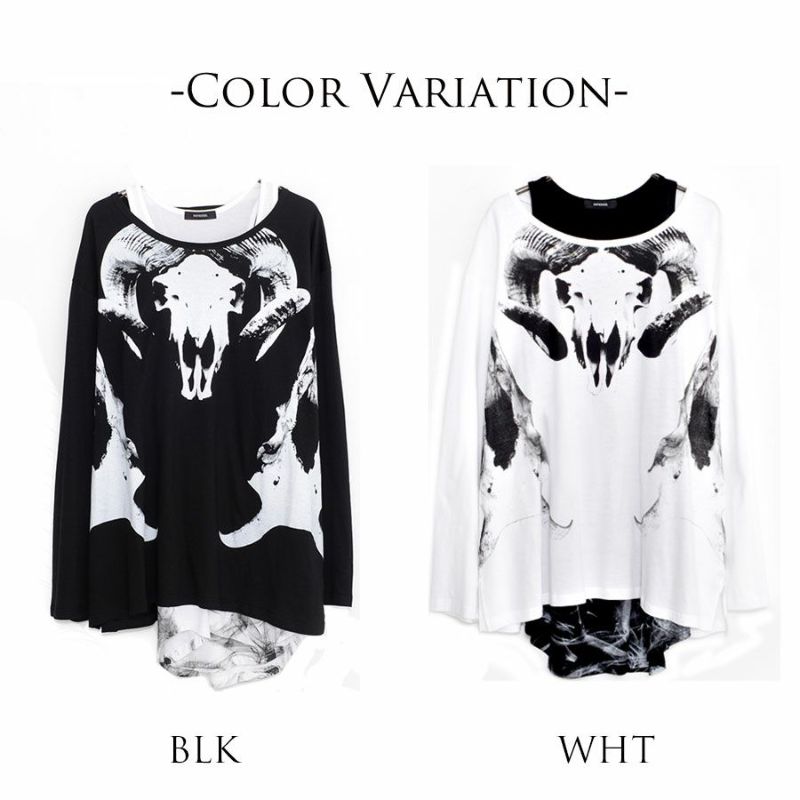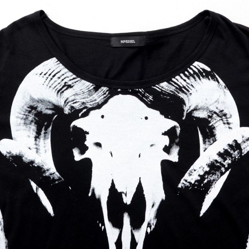 斬新な羊スカルをグラフィックに脇腹部分にもプリントを配置したインパクトあるデザイン。
