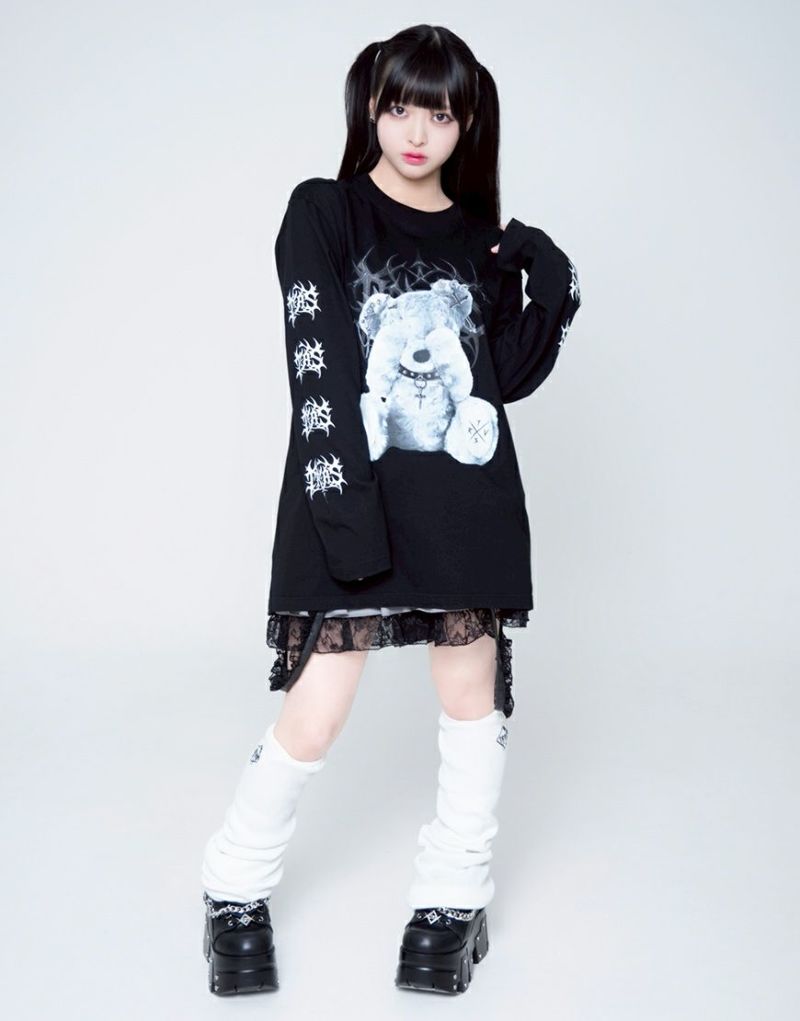 スパイクやチョーカーをあしらったダークテイストのベアが、TRAVASらしい病みかわいい世界観を演出します。