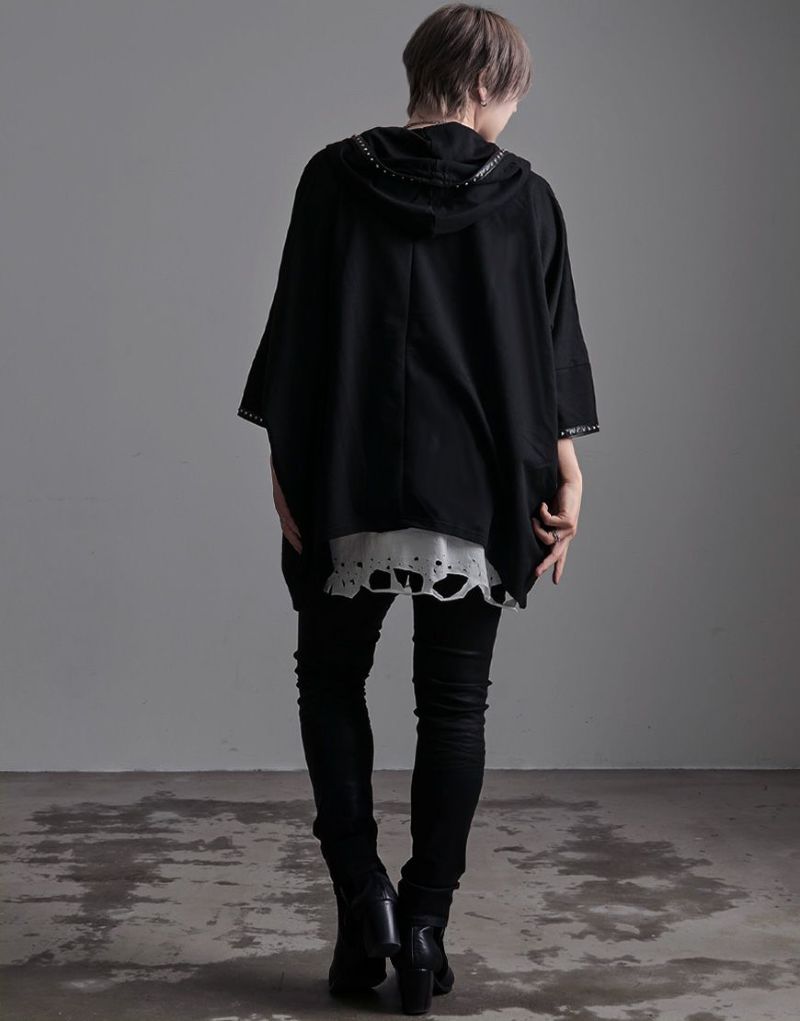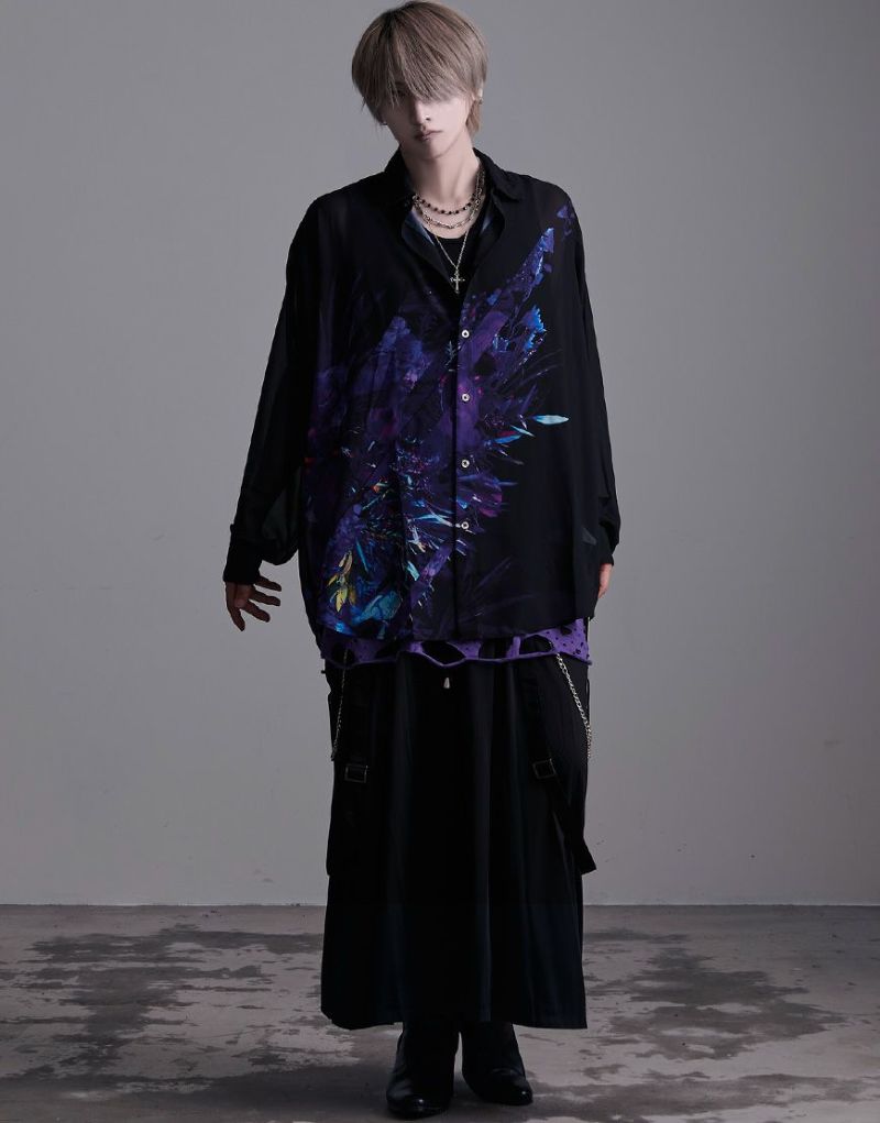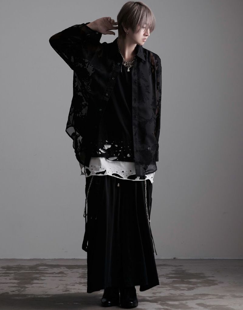 裾部分のクラッシュに加え、ギミックの効いたアシンメトリーな裾のレイヤードデザインはパンキッシュでエッジの効いたヴィジュアルを実現。