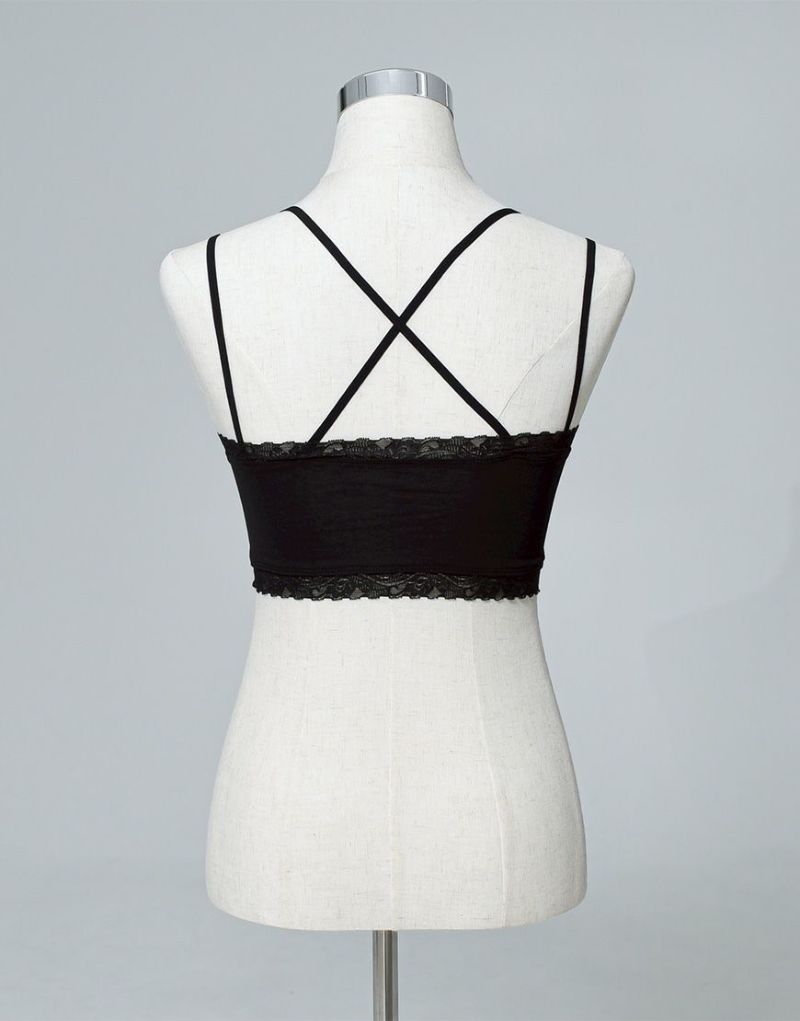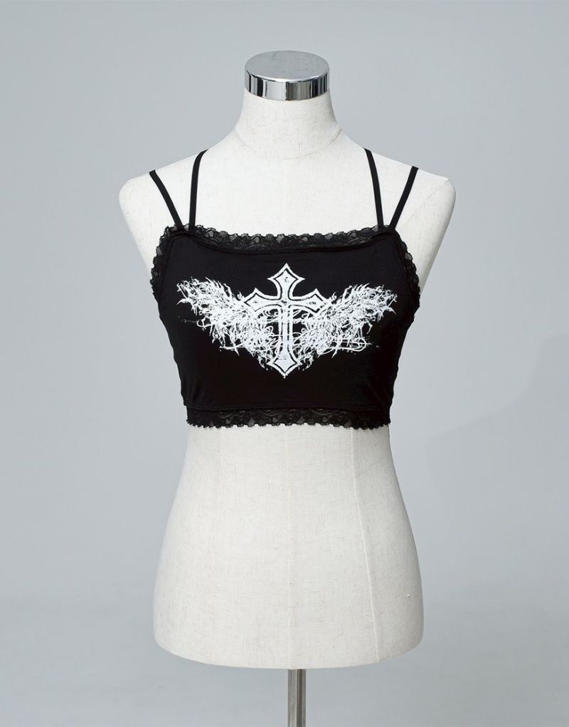 繊細なレースが縁取る、ちょっぴり病みかわ&ちょいゴシックなムードのクロップドキャミです