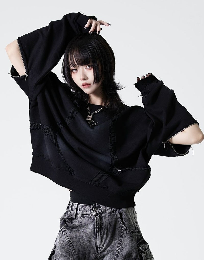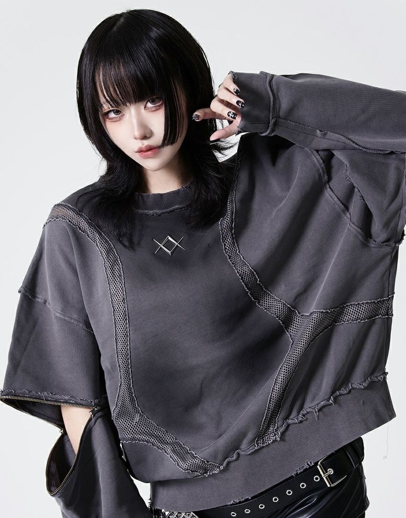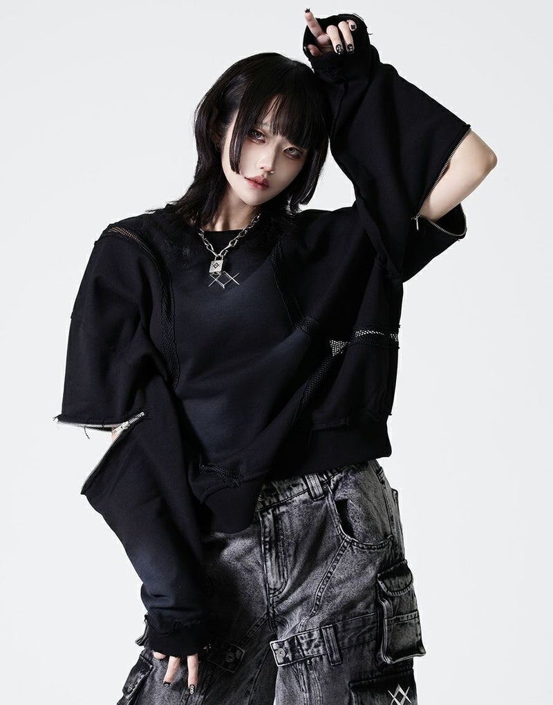 サブカル、地雷系、V系、モード、ストリートなど幅広いテイストにハマり、主役トップスとしても抜群の存在感を放ちます。