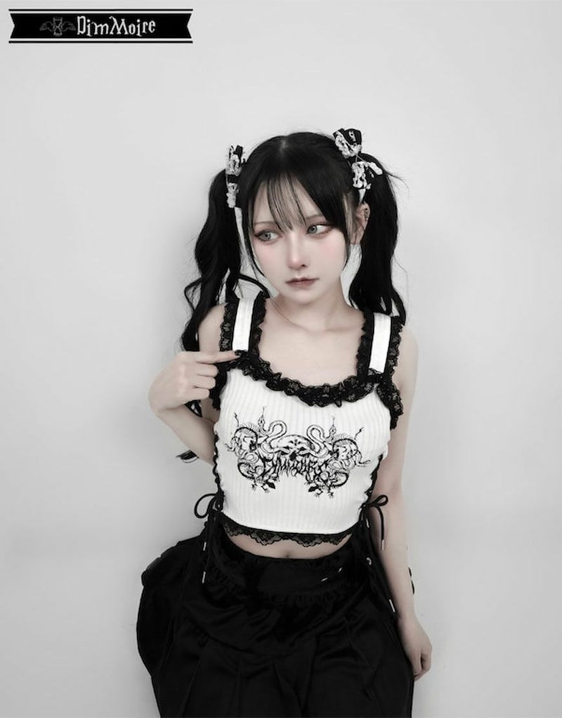 フリルをあしらい、ゴスロリ・パンク風コーデにぴったりなヘアアクセサリーに仕上げました