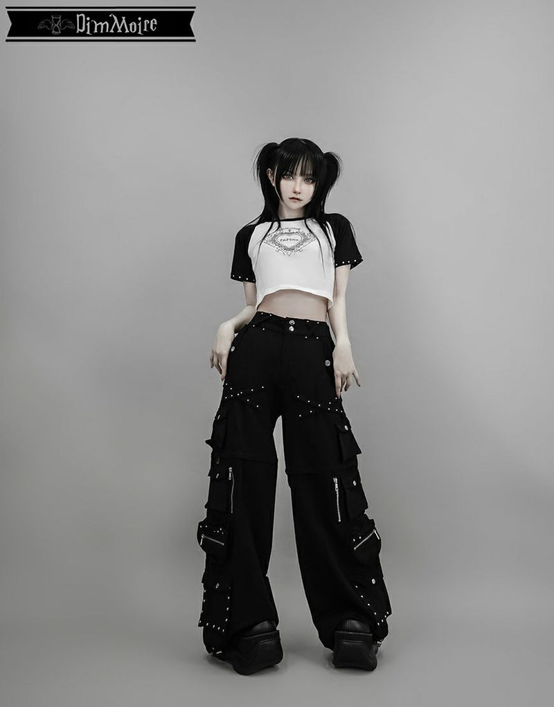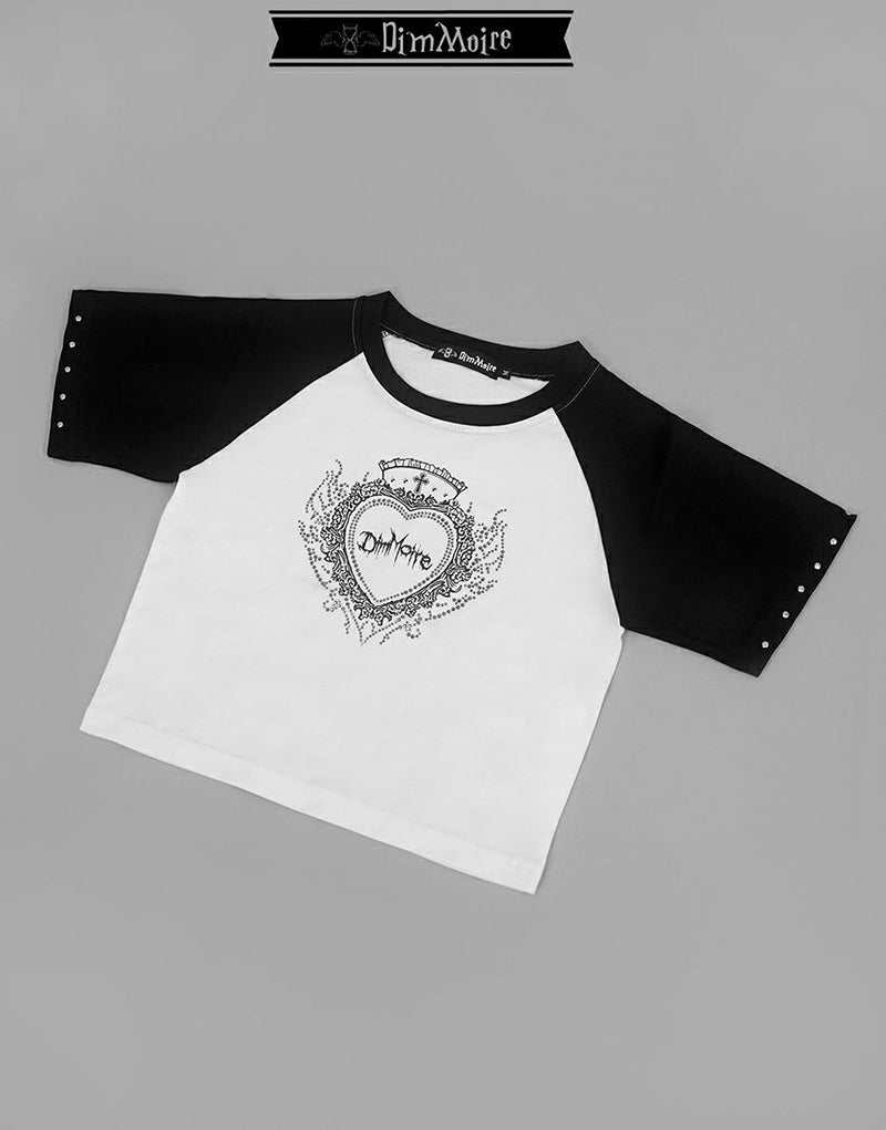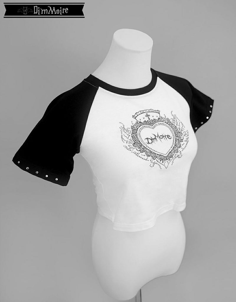 DimMoire【ディムモアール】ラインストーンHeartCoreミニT/Black×White