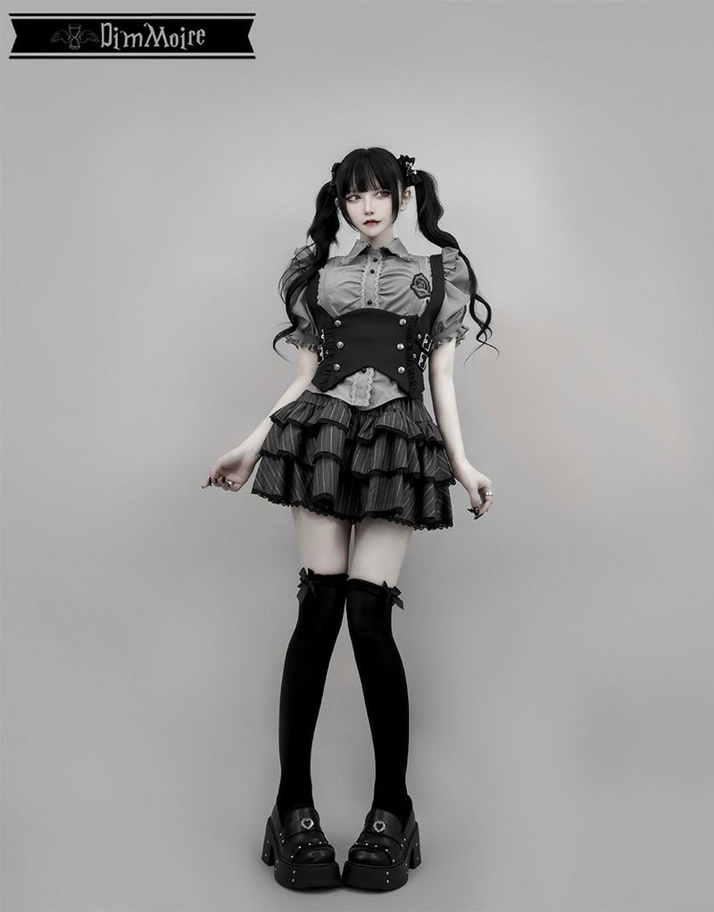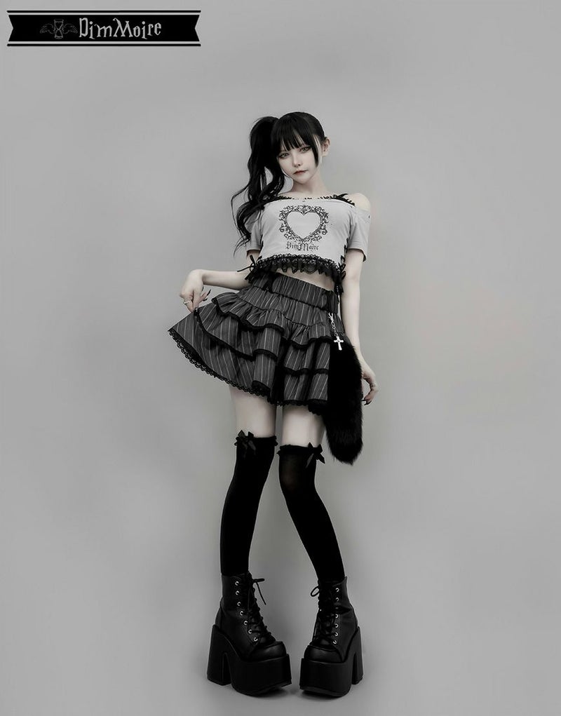 DimMoire【ディムモアール】チャーム付きフリルミニスカート/Gray