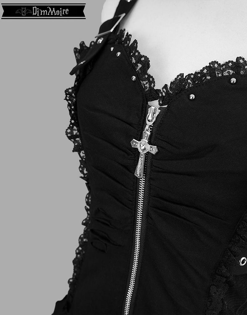 胸元に輝くDimMoireオリジナル十字架ジップチャームと、ジップアップのセンターラインが放つ“強さ”.