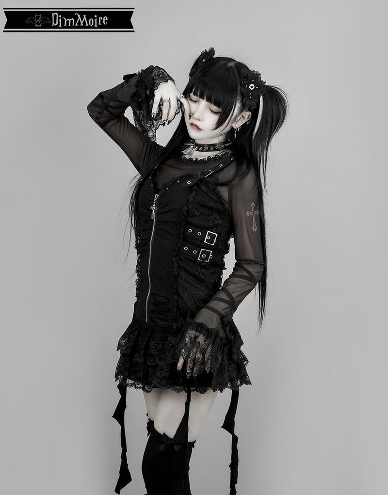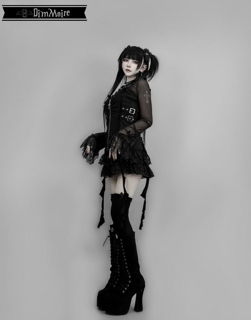 裾にかけて重なるレースと垂れたリボンは、退廃的でありながらも儚く、揺れるたびに幽かな気配を漂わせます.