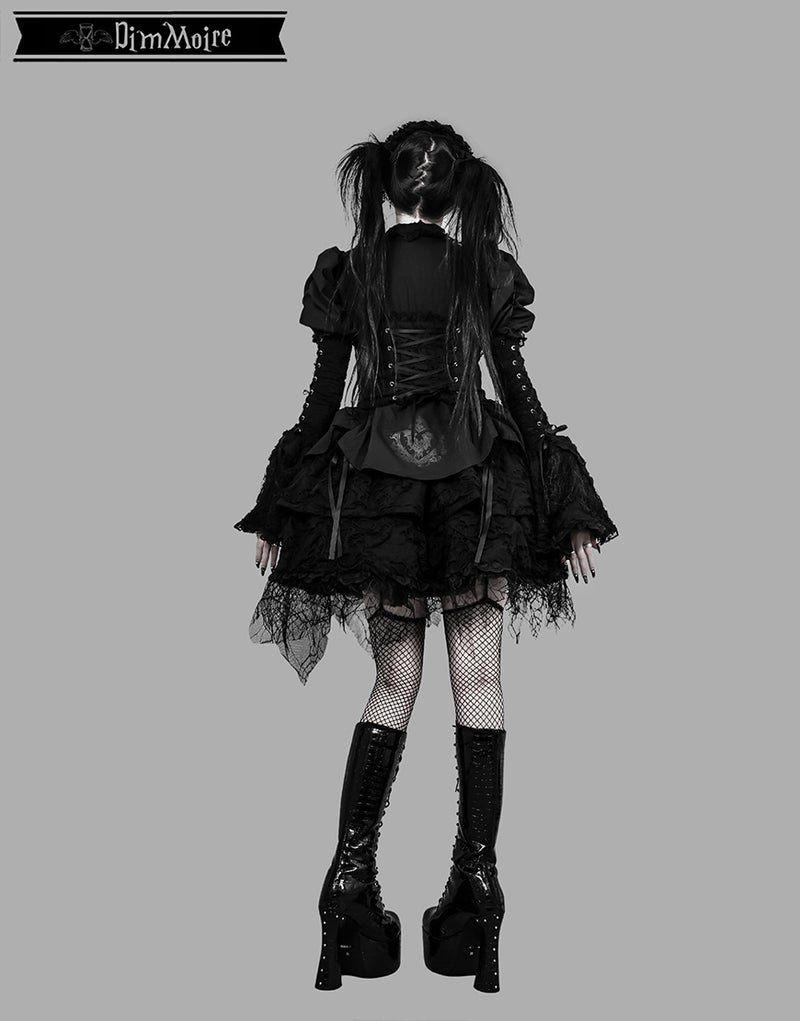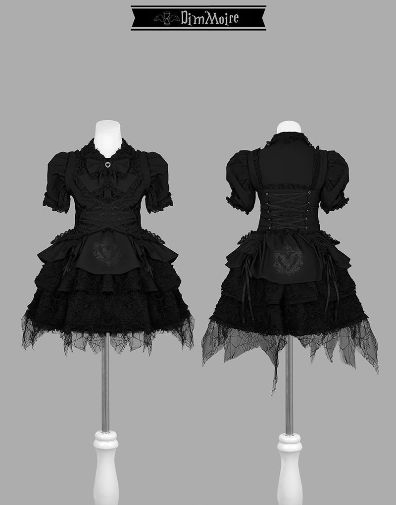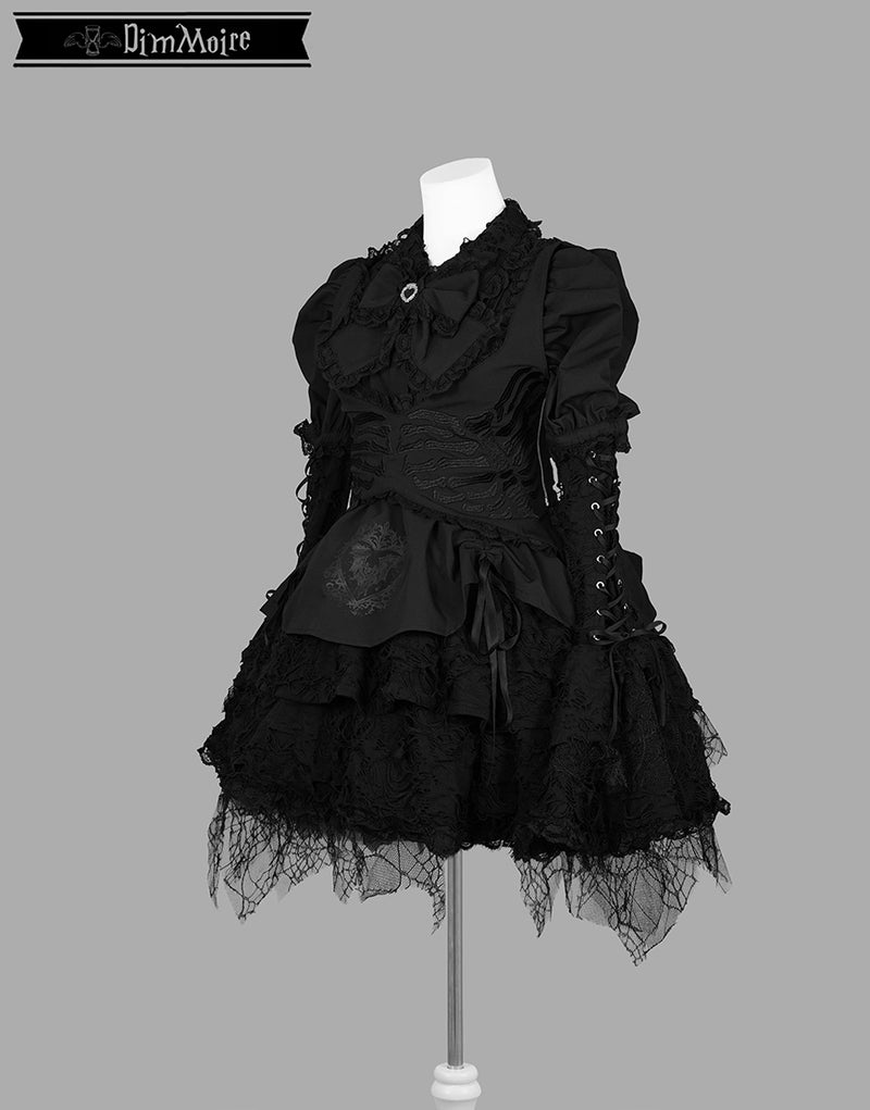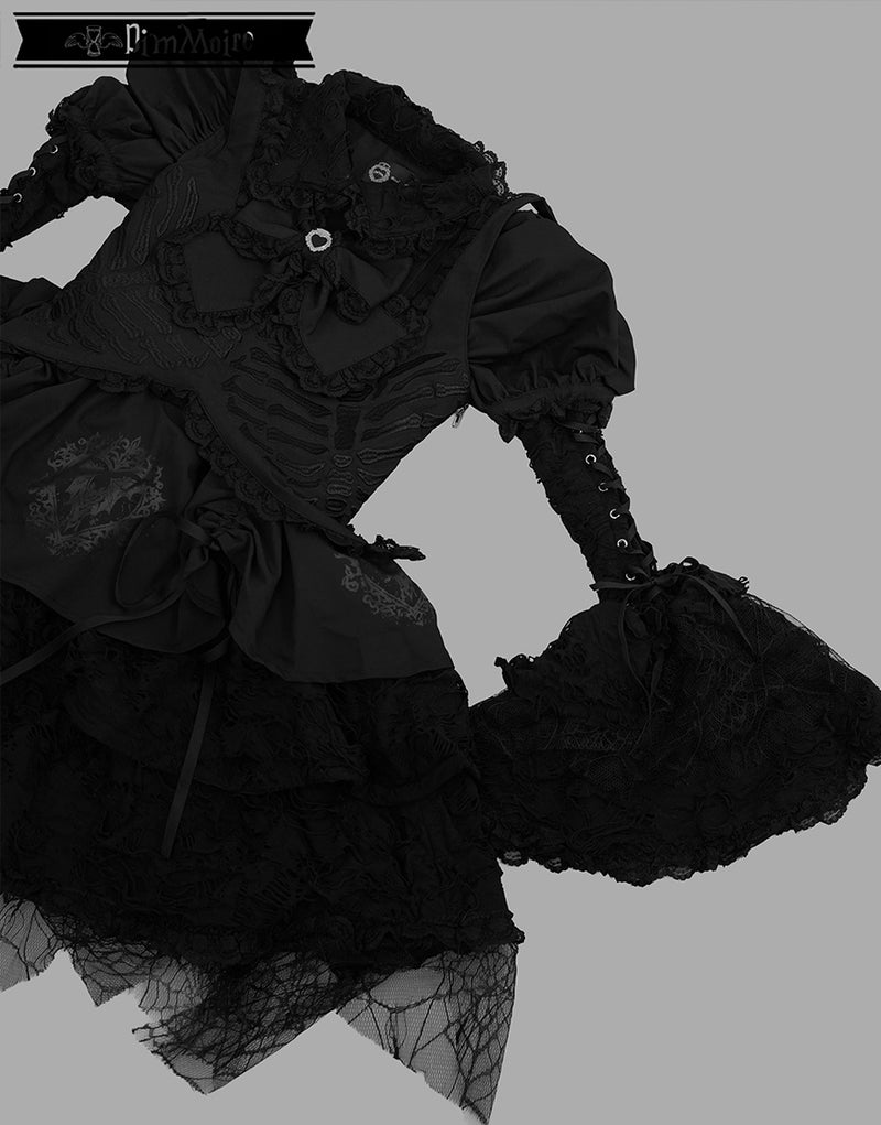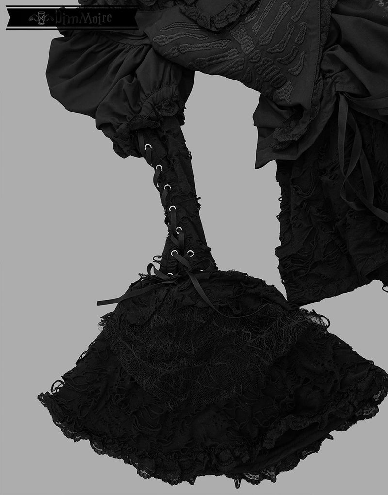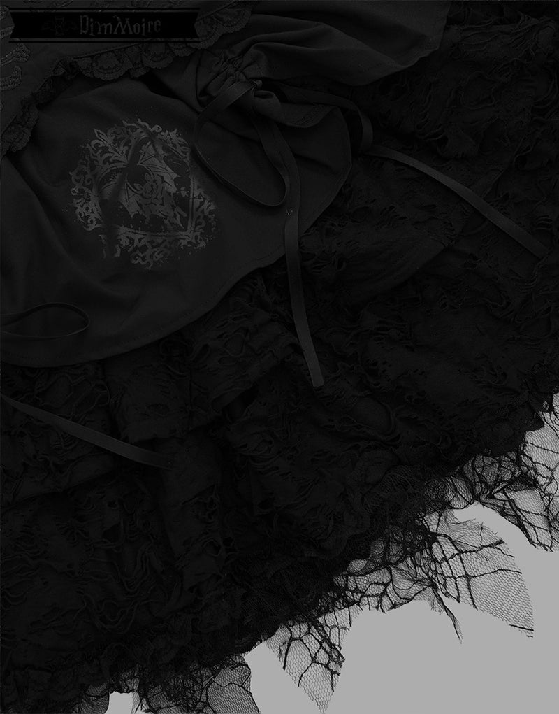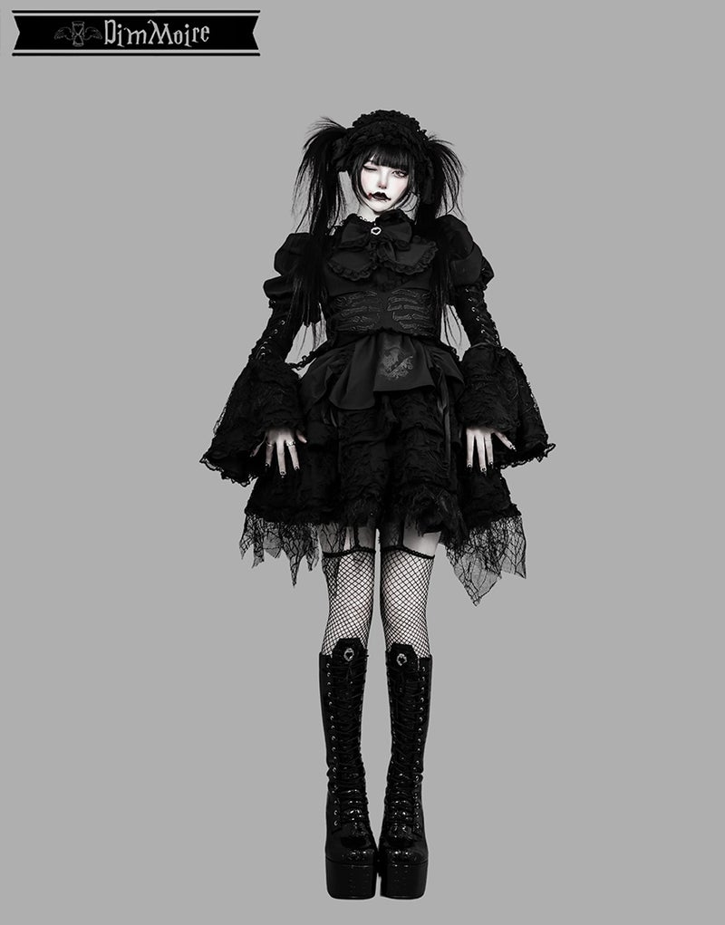 ダメージ生地、蜘蛛の巣柄のレースを贅沢にあしらい、宿命を背負った少女の儚さを演出.