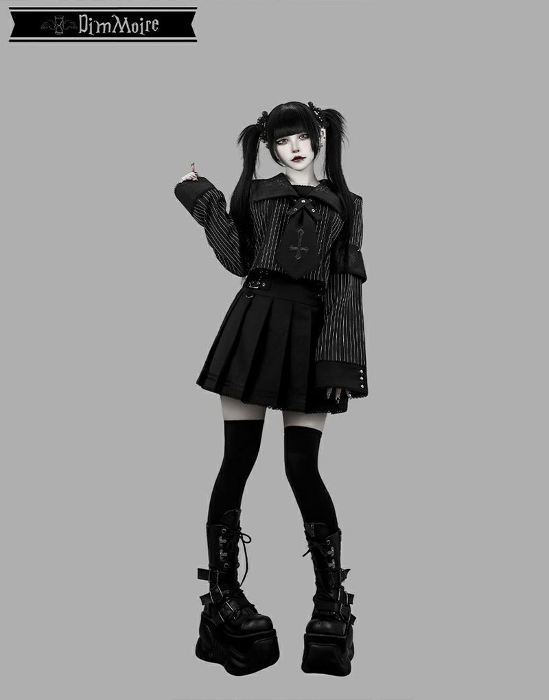 【こちらはBlackの購入ページです】 ・.━━━━━━━ † ━━━━━━━.・ DimMoire学園のNEW制服が登場 トップス+スカートのセットアップです. 刺繍を施したセーラー襟×ネクタイ×腕章が象徴となり、DimMoireらしい世界観と特別感を放つデザインに仕上げました スカートのウエストは後ろ半分がゴム仕様になっております◎ モデル身長:155cm 着用サイズ:Mサイズ ・.━━━━━━━ † ━━━━━━━.・ ※この商品は1点までのご注文とさせていただきます。