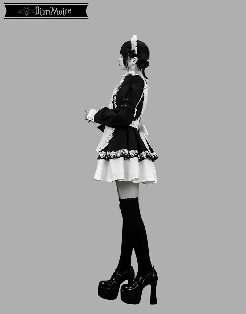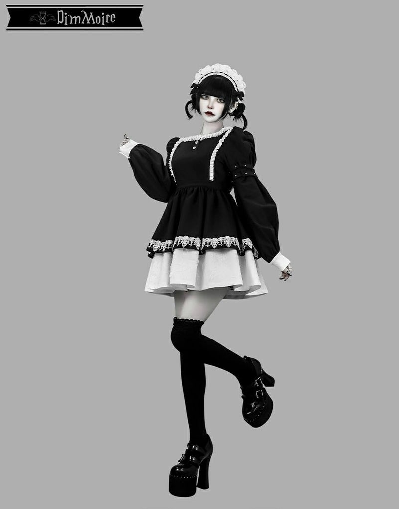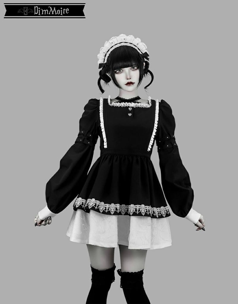 スカートの一番下の段には蜘蛛の巣柄のレースを使用し、ゴシック感をプラス.