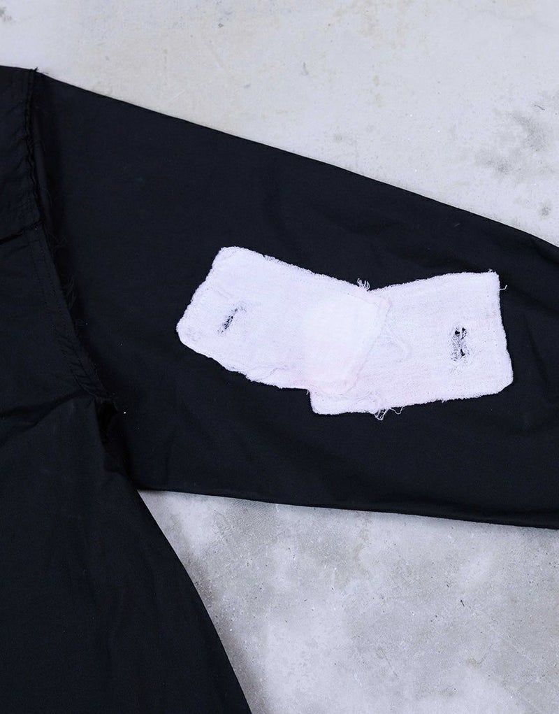 ダメージ加工を施したガーゼを、無機質なシャツ地にランダムに配置。