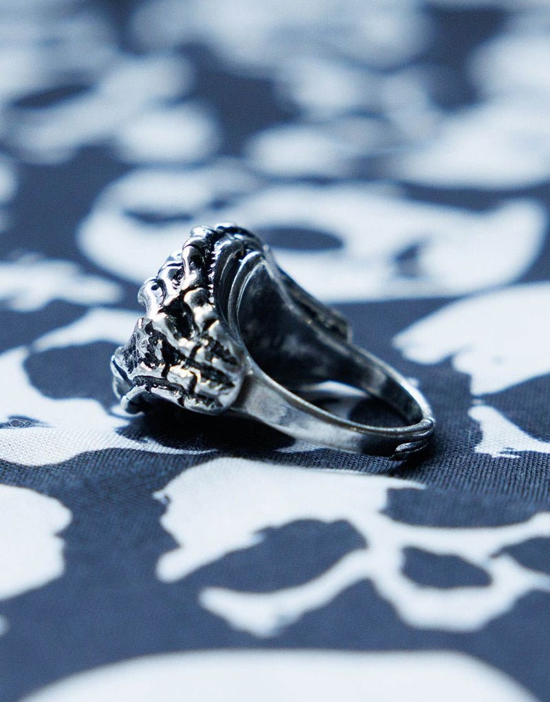 リング全体を包み込むような骨モチーフが、指元に圧倒的なインパクトを与えます。