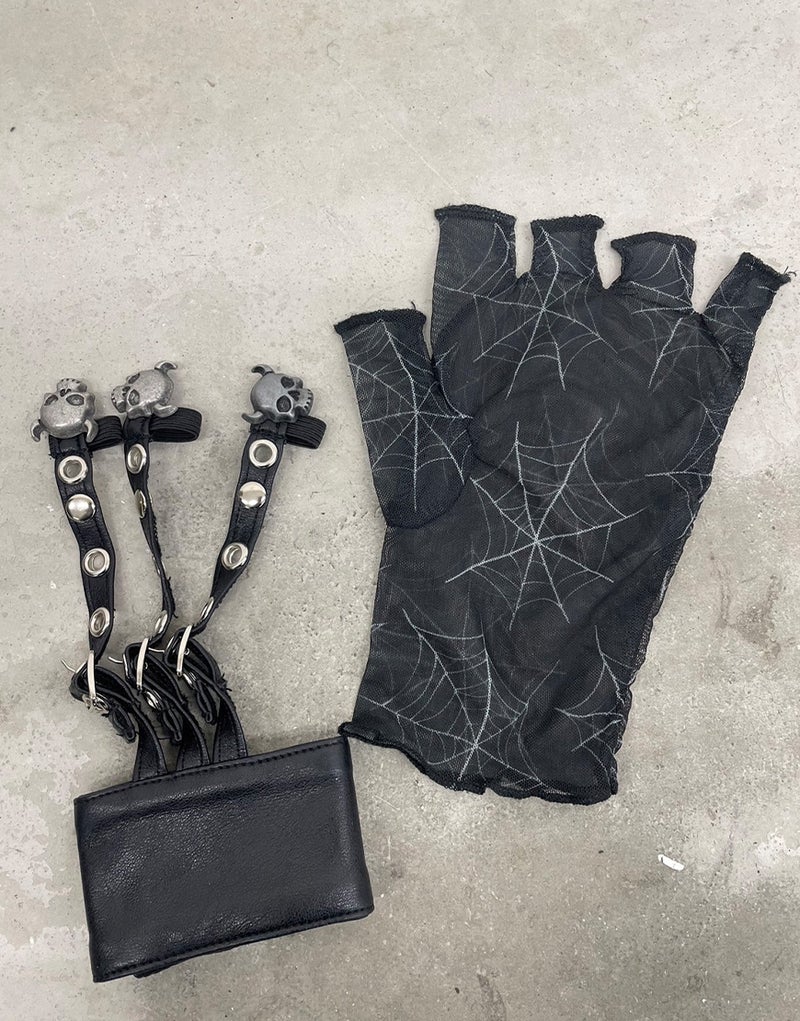 シアー素材のオープンフィンガーグローブと、クールでラグジュアリーなPUレザーグローブのセットです。